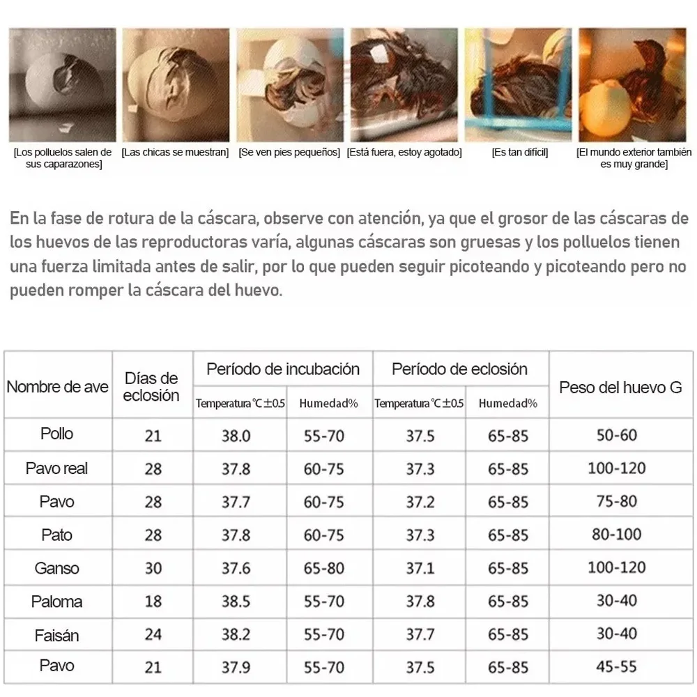 Humedad durante el período de incubación: 55%-70%