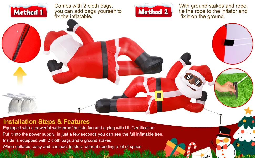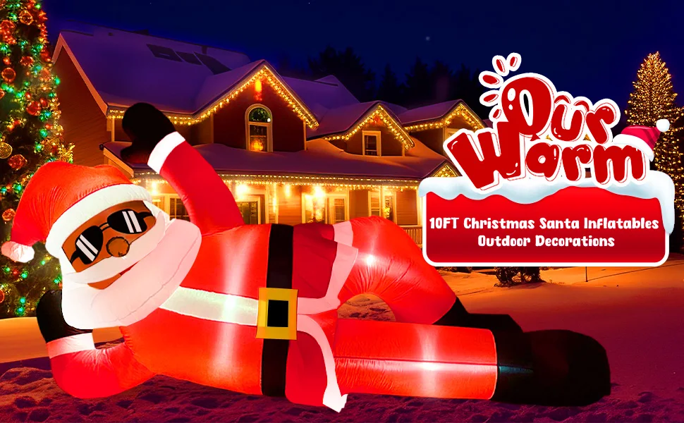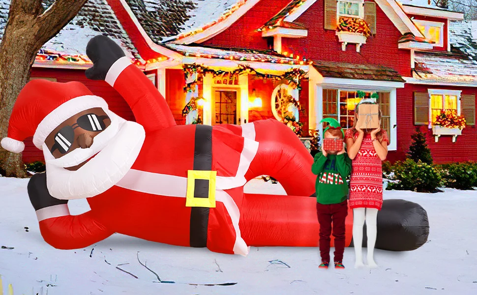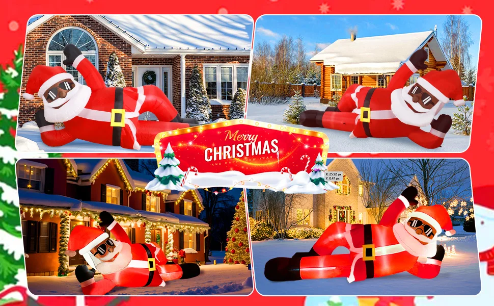 🎅Diseño impresionante y llamativo: agregue un toque único a su decoración navideña con nuestra pose de Papá Noel negra inflable de 10 pies de largo única. Esta llamativa decoración seguramente impresionará a sus vecinos y creará un ambiente festivo en su patio. El tamaño gigante y el diseño llamativo lo convierten en un complemento perfecto para sus festividades navideñas.
