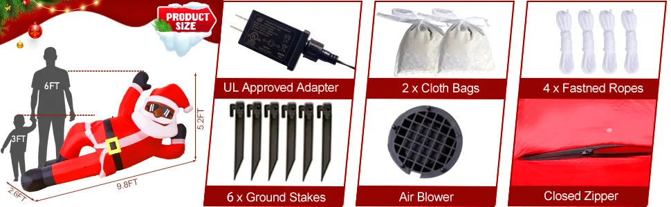 🎅Configuración rápida y fácil: Con el soplador de aire incluido, la configuración de Estas decoraciones navideñas al aire libre es muy fácil. Simplemente conecte el soplador y observe cómo el Papá Noel se infla gradualmente en minutos. La FUNCIÓN DE autoinflado elimina la necesidad de sopladores o bombas manuales, lo que le ahorra tiempo y esfuerzo durante la ajetreada temporada de vacaciones.