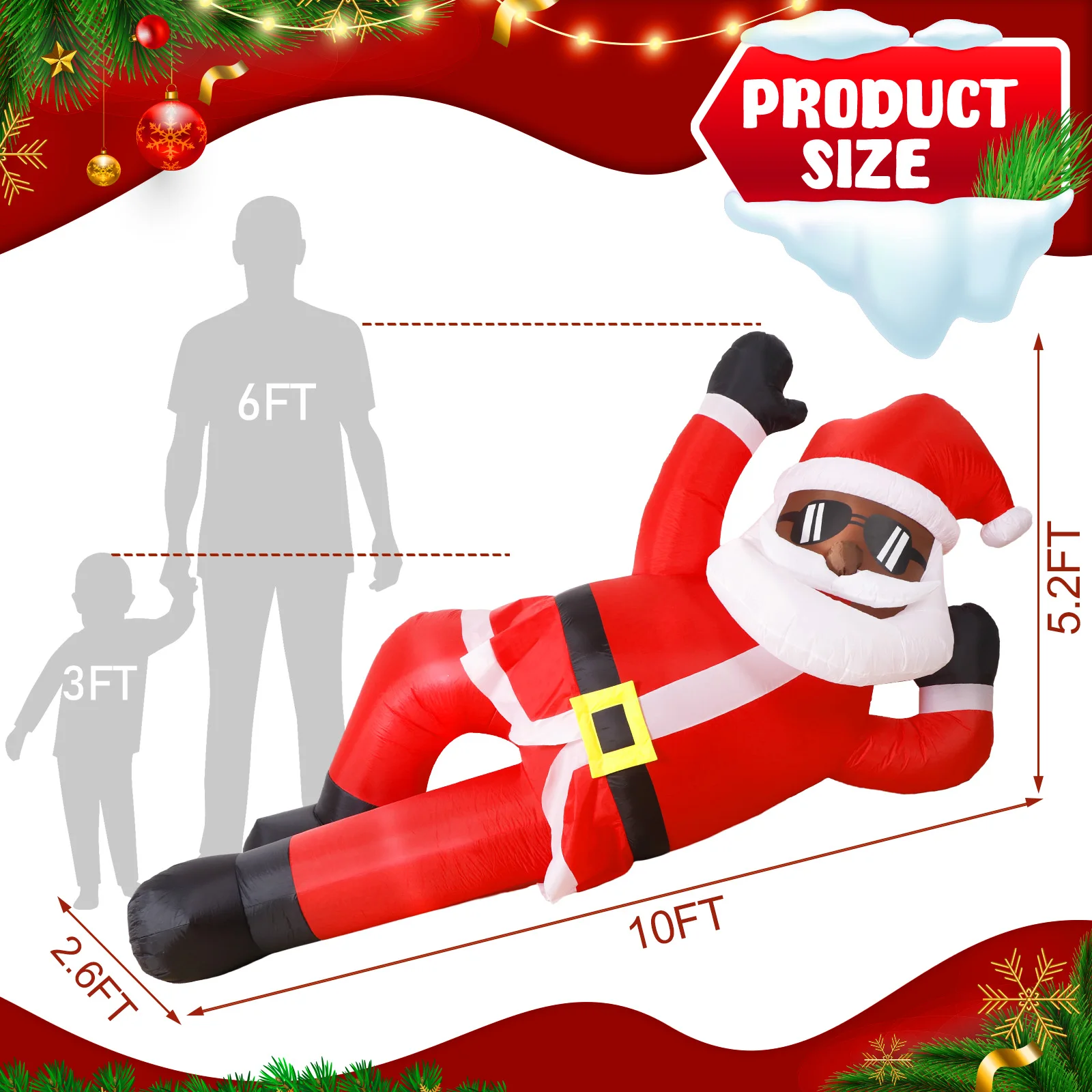 🎅Diseño impresionante y llamativo: agregue un toque único a su decoración navideña con nuestra pose de Papá Noel negra inflable de 10 pies de largo única. Esta llamativa decoración seguramente impresionará a sus vecinos y creará un ambiente festivo en su patio. El tamaño gigante y el diseño llamativo lo convierten en un complemento perfecto para sus festividades navideñas.