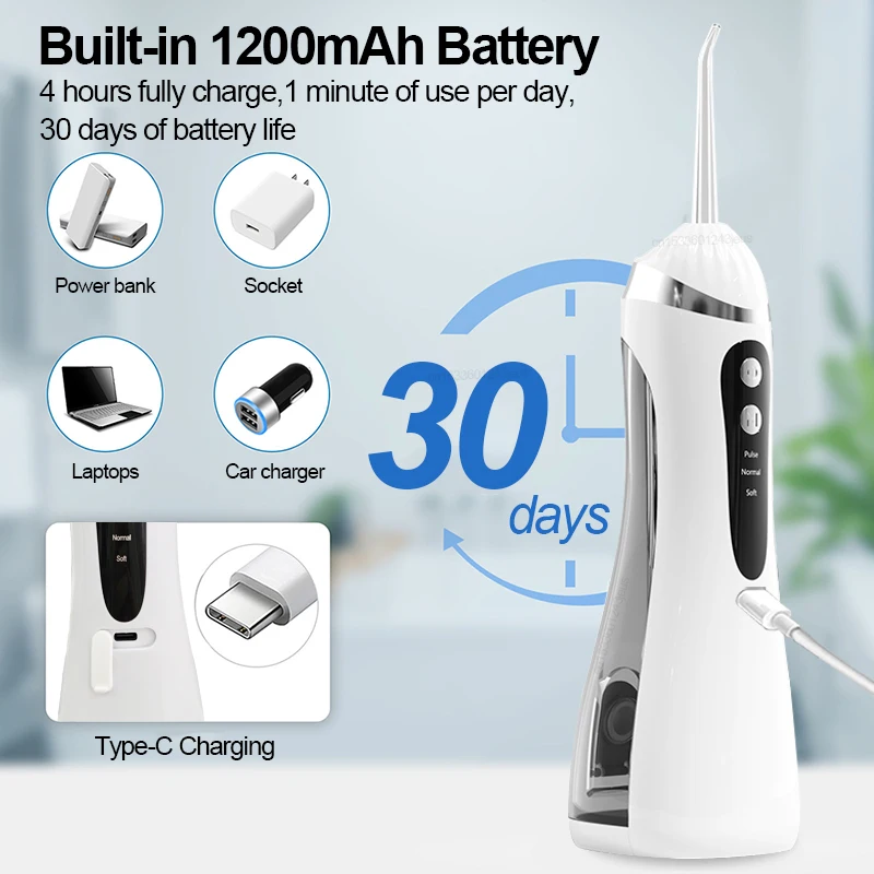 Irrigador oral eléctrico, 3 modos de limpieza, recargable por USB, resistente al agua IP65, irrigador bucal, 4 boquillas, irrigadores dentales portátiles