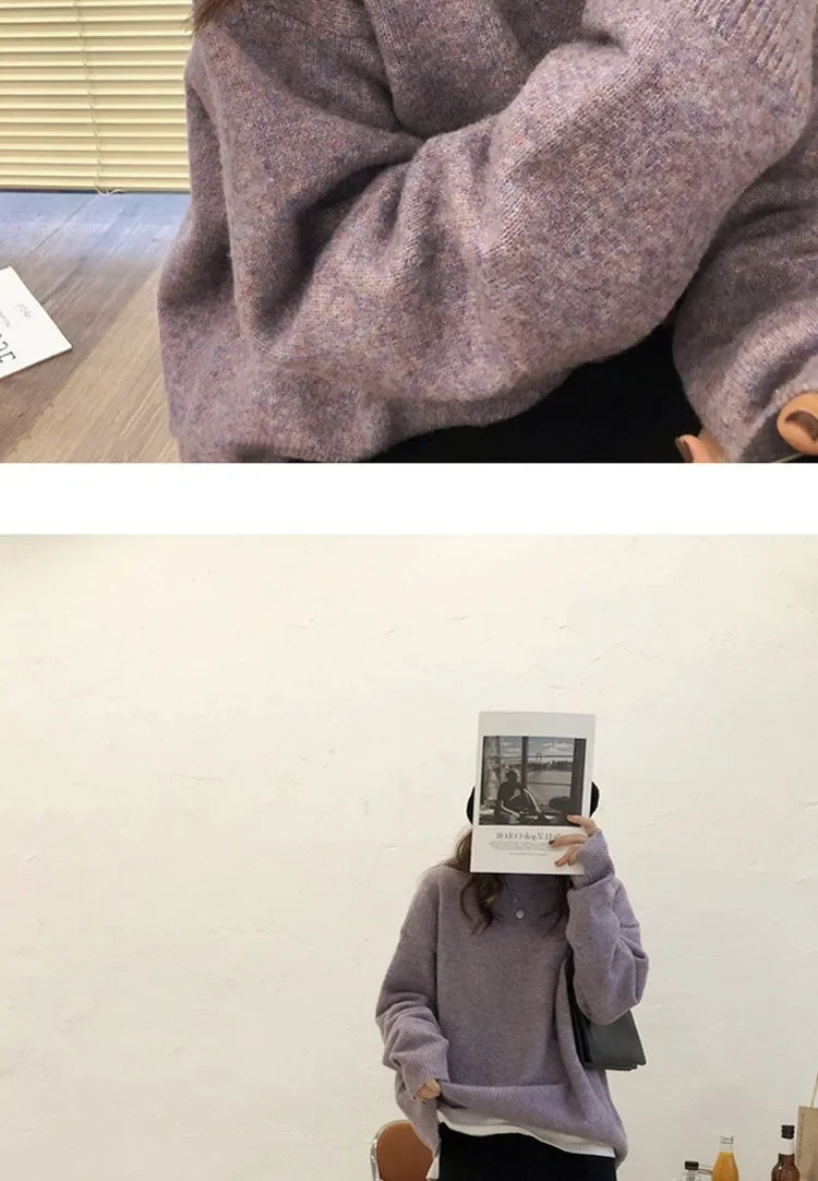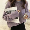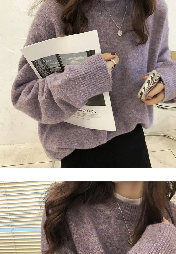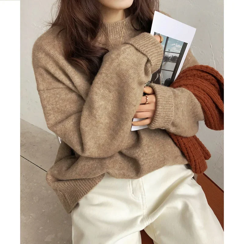 Jersey holgado de estilo Vintage para mujer, Jersey de Color sólido, Top de punto con cuello redondo, suave y flexible, otoño e invierno