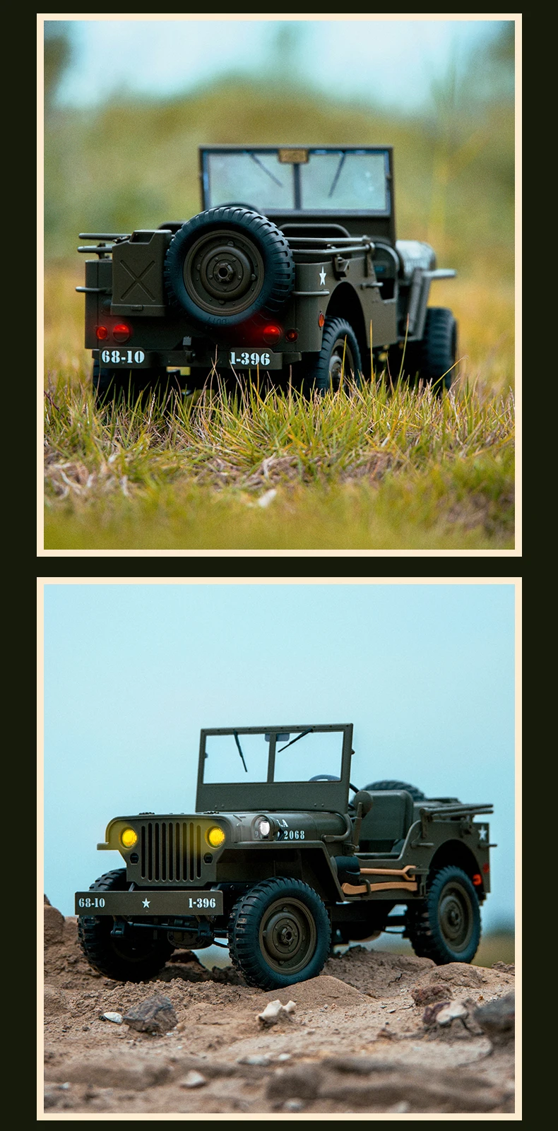 6. Simulación de altura estática, que ayuda a los entusiastas a coleccionar y decorar; en 1940, la empresa estadounidense Willis Automobile desarrolló un vehículo todoterreno multiusos. El coche tiene una potencia de 60P, 590 KG de peso propio y 300 KG de carga útil. Al mismo tiempo, estaba equipado con un sistema de tracción en las cuatro ruedas, que fundó tres veces más potencia de automóviles similares en ese momento. Este vehículo es rápido y liviano, fácil de transportar, se utiliza principalmente para transportar armas livianas equipadas por batalones de infantería y puede usarse como vehículo de comunicación, reconocimiento y comando.