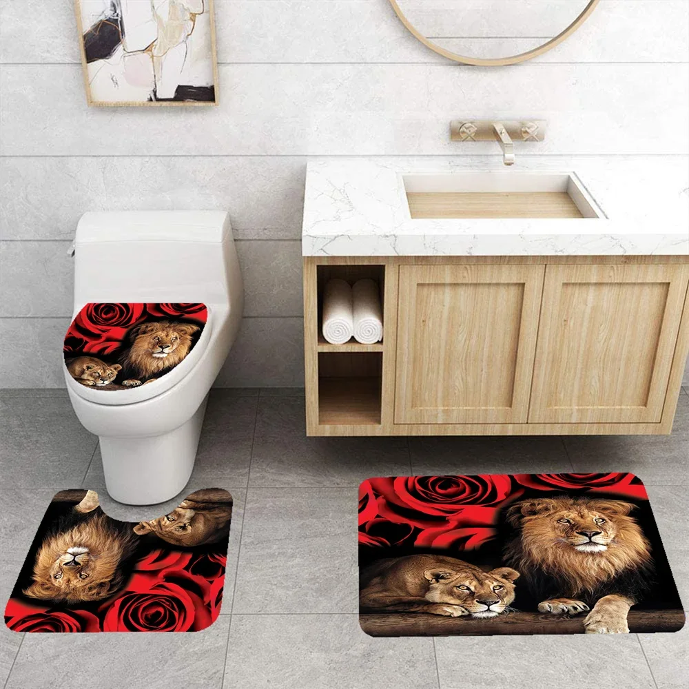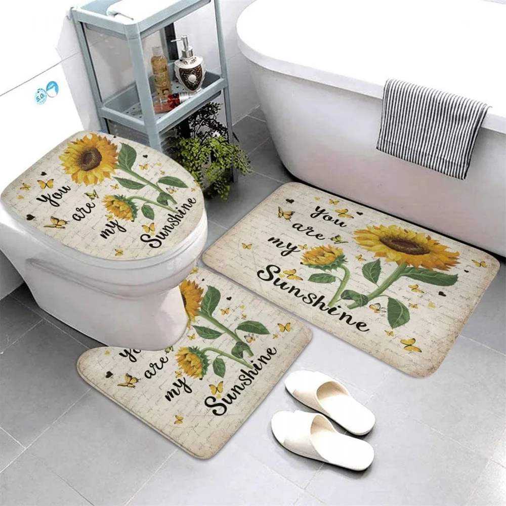 🌻[INFORMACIÓN DEL TAMAÑO]: Tamaño de la cortina de baño de girasol: 180x180CM, tamaño de la alfombra de baño/Alfombra: L76CM x W46CM, tamaño de la tapa del inodoro: L46CM x W36CM, tamaño de la alfombra en forma de U: 46cm x 37cm. Este tamaño de juego de baño es adecuado para la mayoría de baños o inodoros.