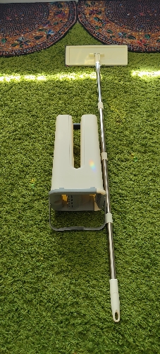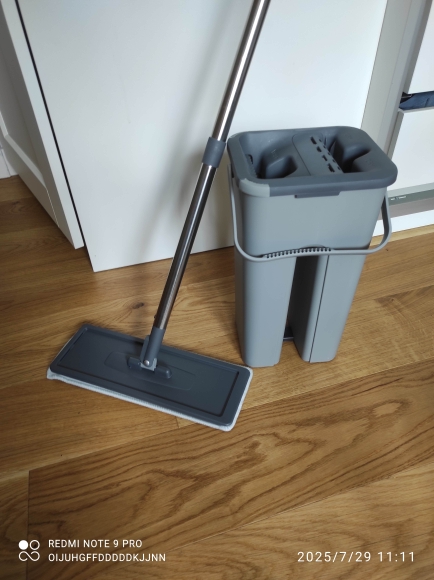 Juego de cubo y fregona de suelo plano manos libres para sistema profesional de limpieza de suelo doméstico con almohadillas de microfibra lavables para madera dura