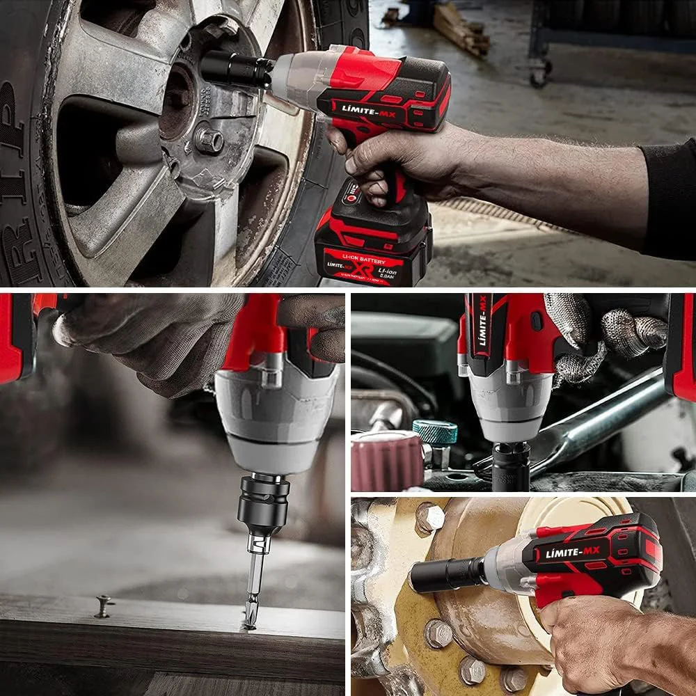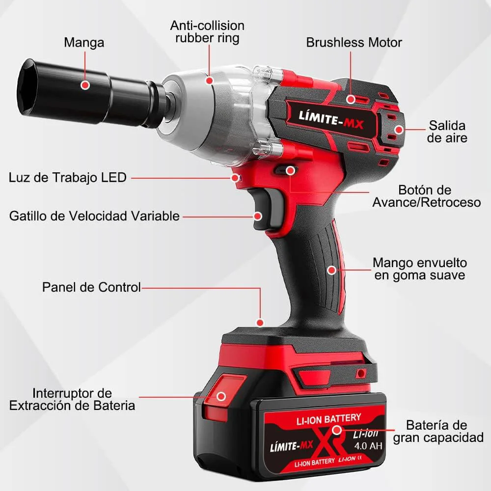 Nuestras llaves sin escobillas vienen con dos baterías de iones de litio de alta capacidad de 4000 mAh para hasta 4 horas de funcionamiento continuo, además de baterías adicionales para mantener las llaves listas para usar.