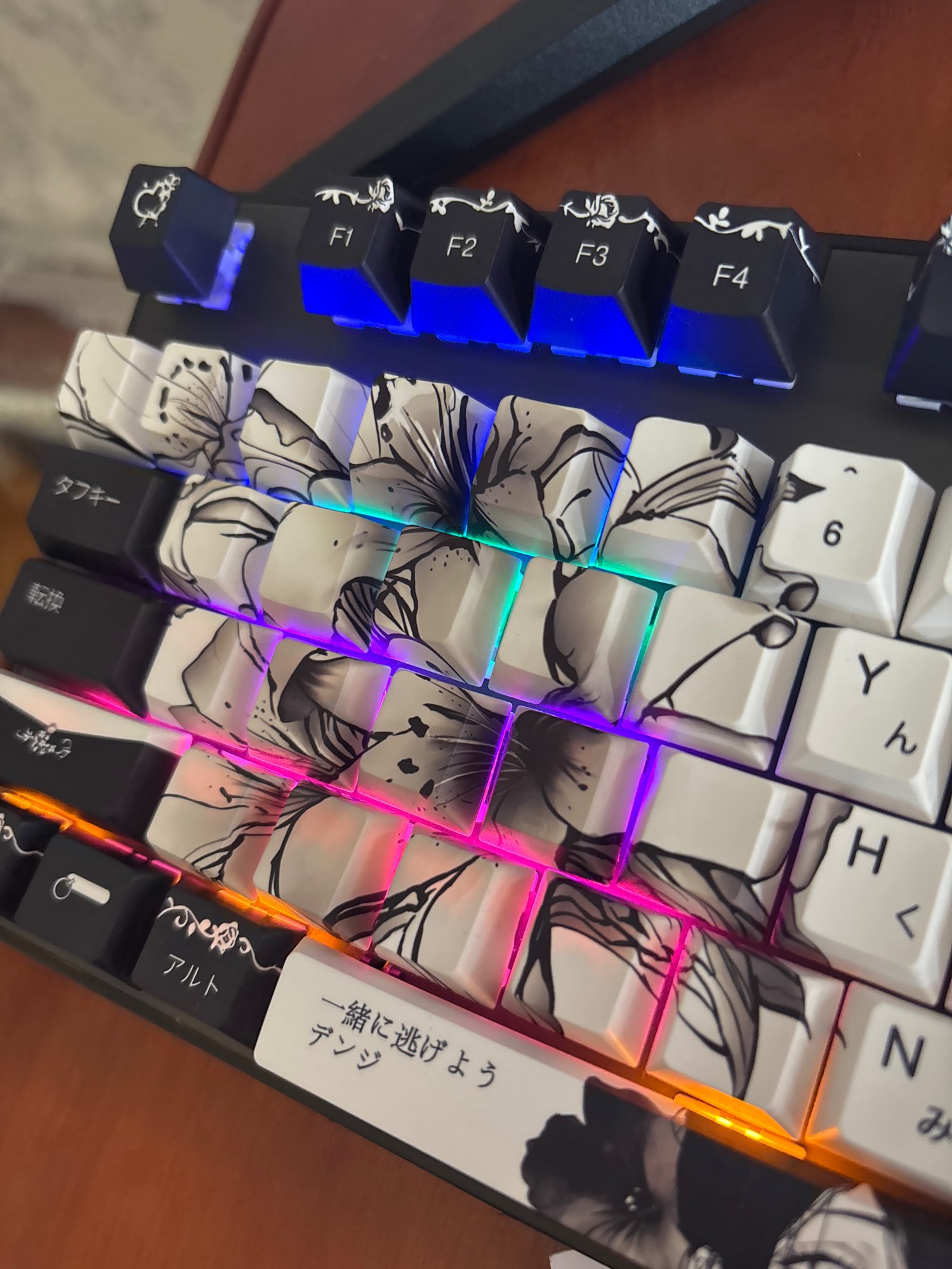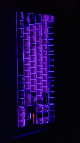 La calidad de los keycaps es muy buena, su textura es ligeramente más suave pero de una manera agradable. El diseño está muy bien hecho y es precioso. No noté ningún defecto ni luz que pasara a través de ellos. Aunque el precio es un poco alto, vale la pena. Simplemente no sé cómo será la variación de calidad, pero los míos llegaron muy bien hechos y empaquetados.