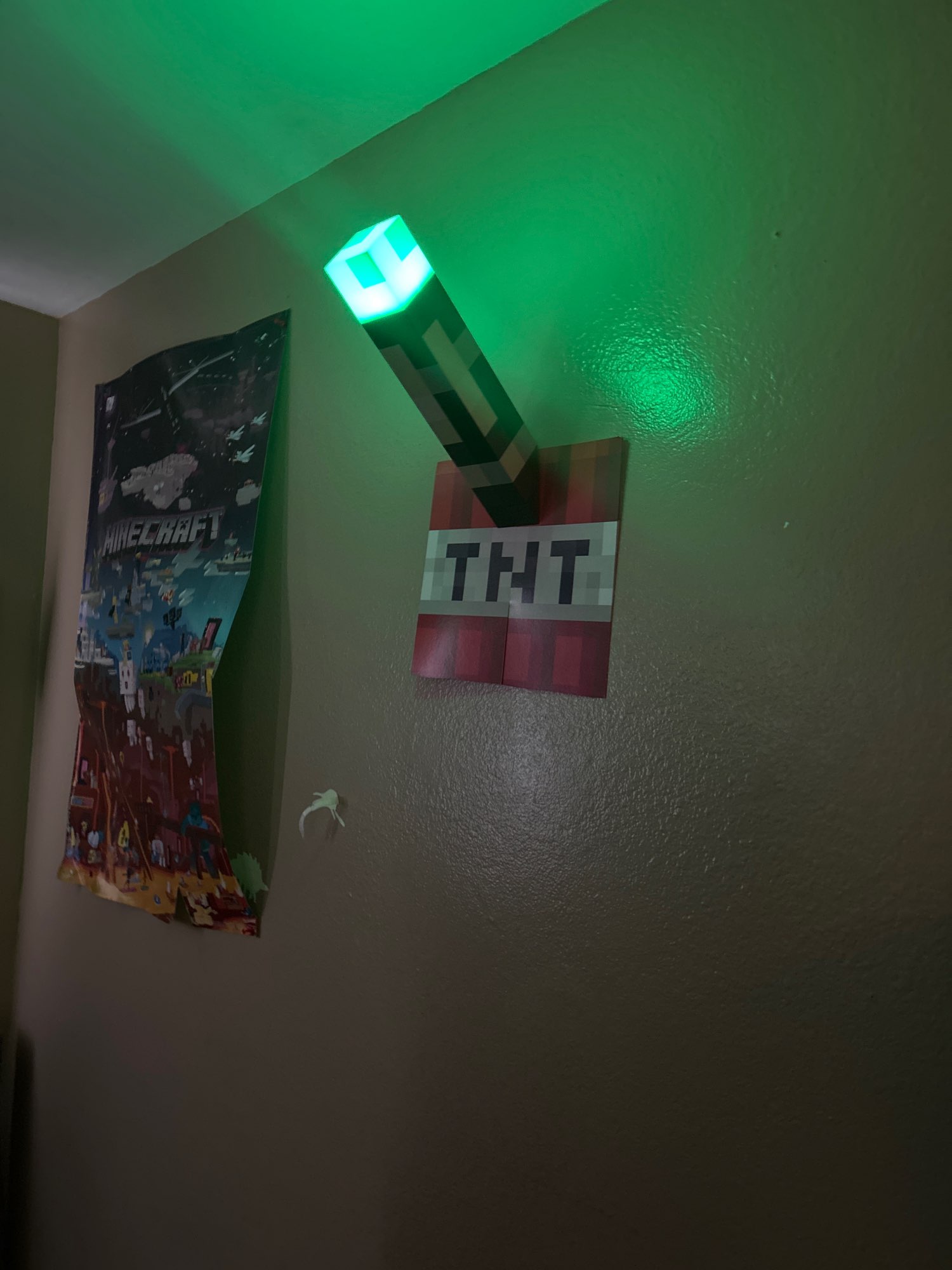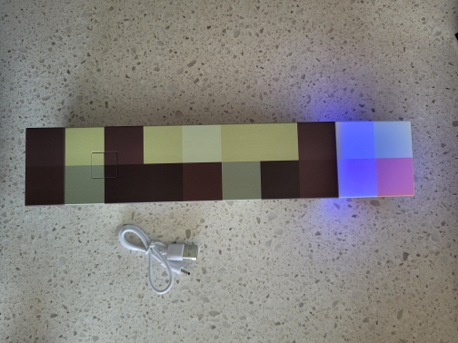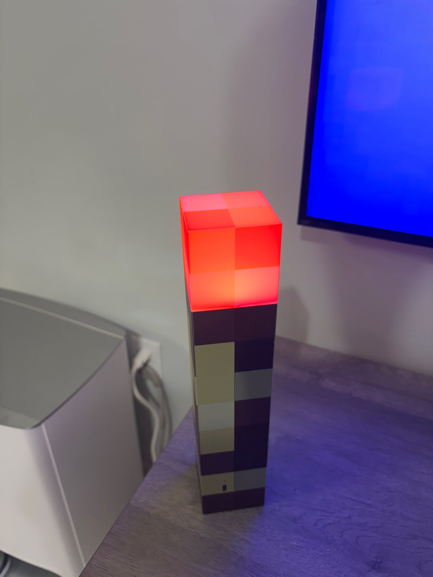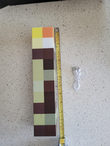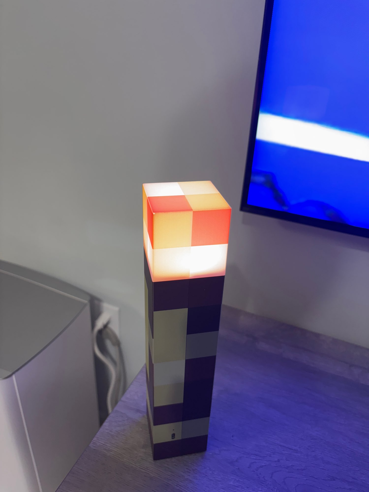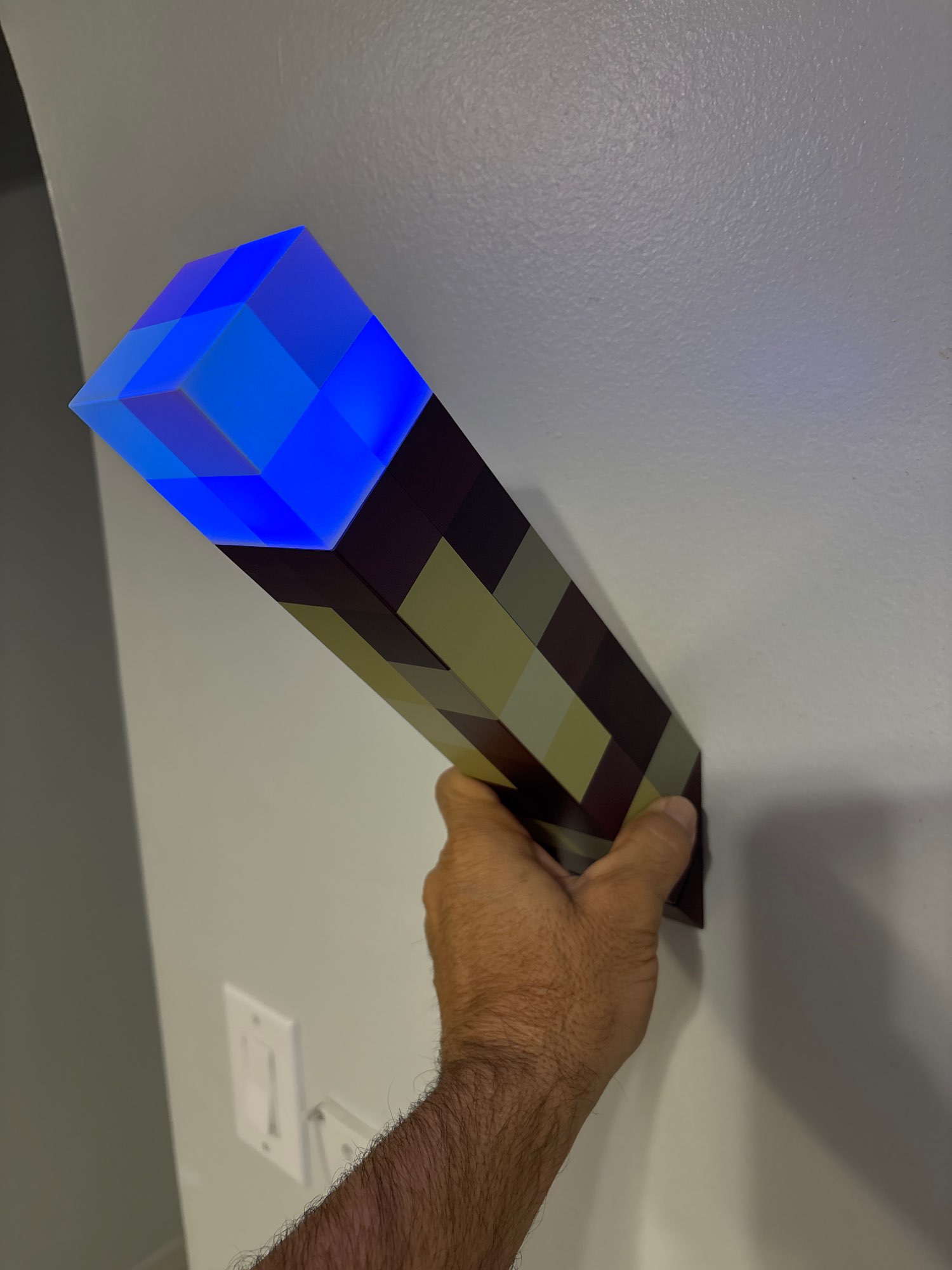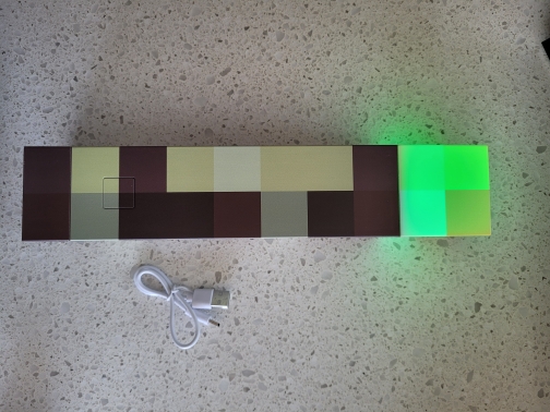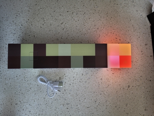 ¡Me encanta esta linterna! Diferentes colores simulan una antorcha de carbón, una antorcha de piedra roja y otras. Me gusta la base plegable que se puede fijar a la pared en un ángulo, tal como se muestra en el juego. No es muy brillante, pero como es decorativo, no importa. Todavía luce y funciona de maravilla.