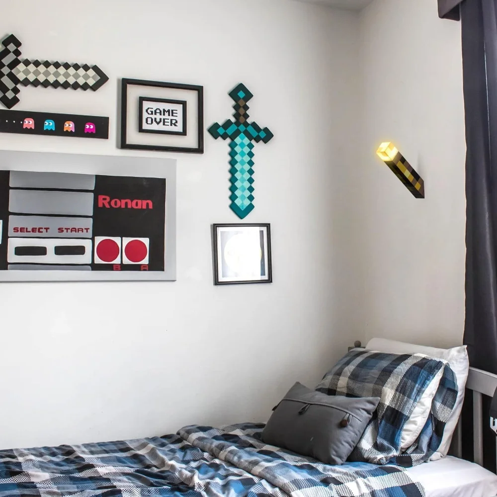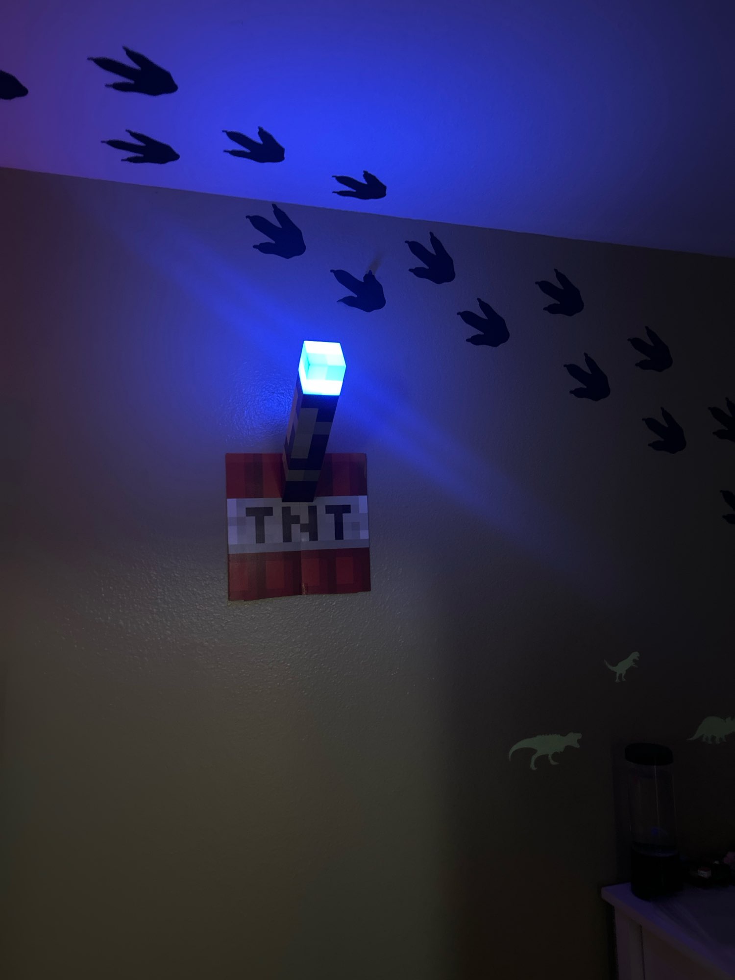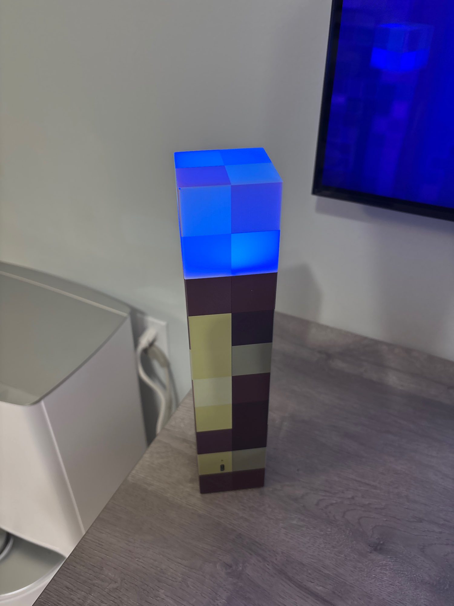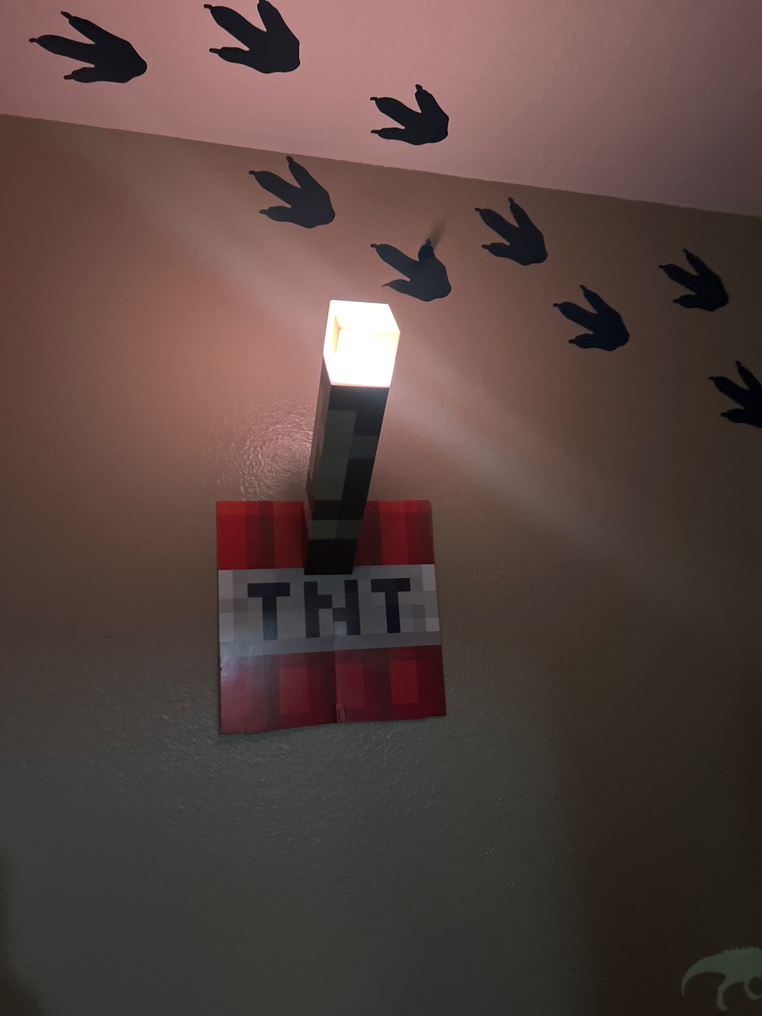 ¡Me encanta esta linterna! Diferentes colores simulan una antorcha de carbón, una antorcha de piedra roja y otras. Me gusta la base plegable que se puede fijar a la pared en un ángulo, tal como se muestra en el juego. No es muy brillante, pero como es decorativo, no importa. Todavía luce y funciona de maravilla.