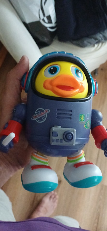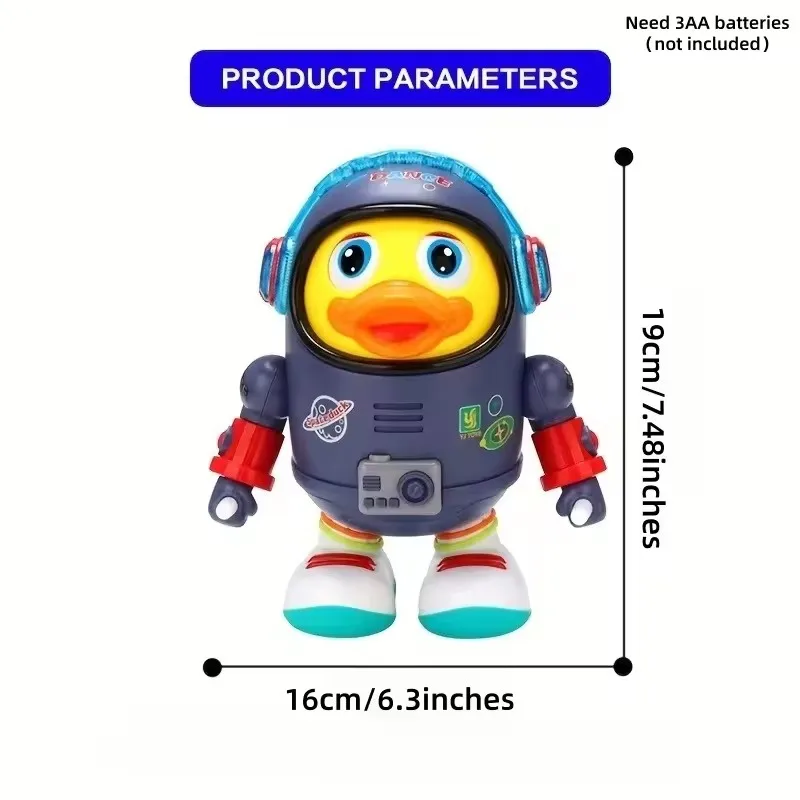 😝 【 Easy to Play 】There are 2 modes for choose. In the dynamic mode, the space duck will dance with music and the colored light earphones on the head will continue to change colors, attracting the baby’s attention, so that the baby unconsciously dances with the duckling. In the static mode, the duck will keep quiet but the colored light will still continue to change colors.