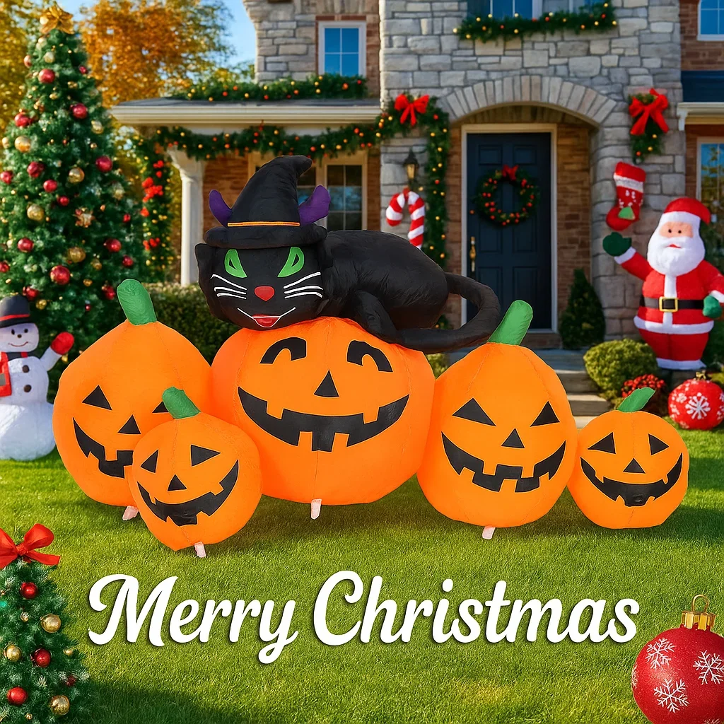 Juguete inflable de Halloween de 4,92 pies, calabaza de gato negro con luces LED, adornos de patio, decoración de fiesta de césped, decoración de Halloween al aire libre