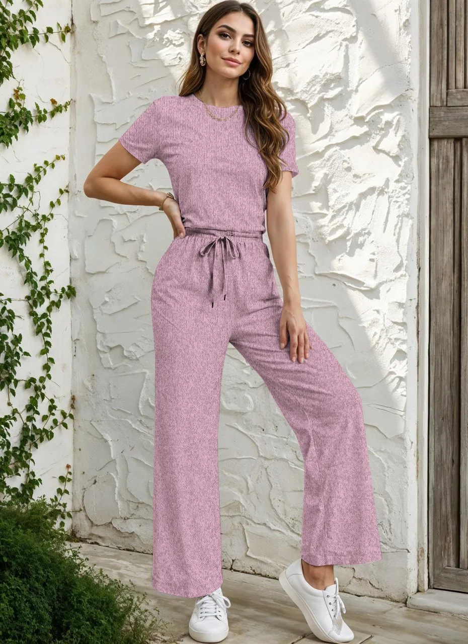 Jumpsuit Moderno Con Cintura Ajustable Y Corte Recto Diseño De Manga Corta Y Pantalón Amplio Estilo Favorecedor Y Versátil Casual Y Elegante Para Mujer Mono Chic Moderno Femenino