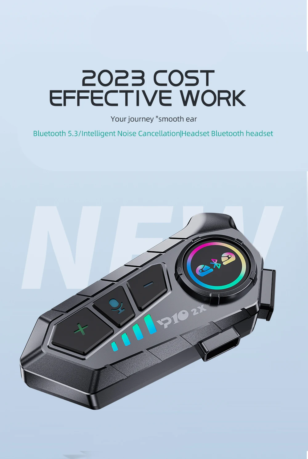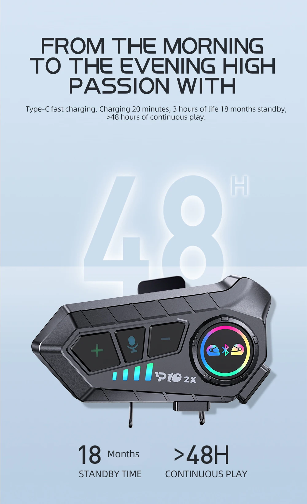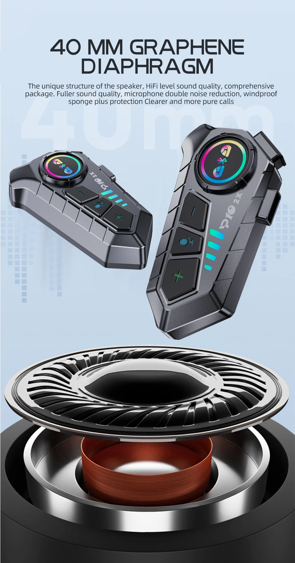 Intercomunicador Bluetooth para casco de motocicleta, auricular BT5.3, intercomunicador impermeable para 2 conductores, intercomunicador inalámbrico para Moto, intercomunicador inalámbrico, intercomunicación de música, Control por voz