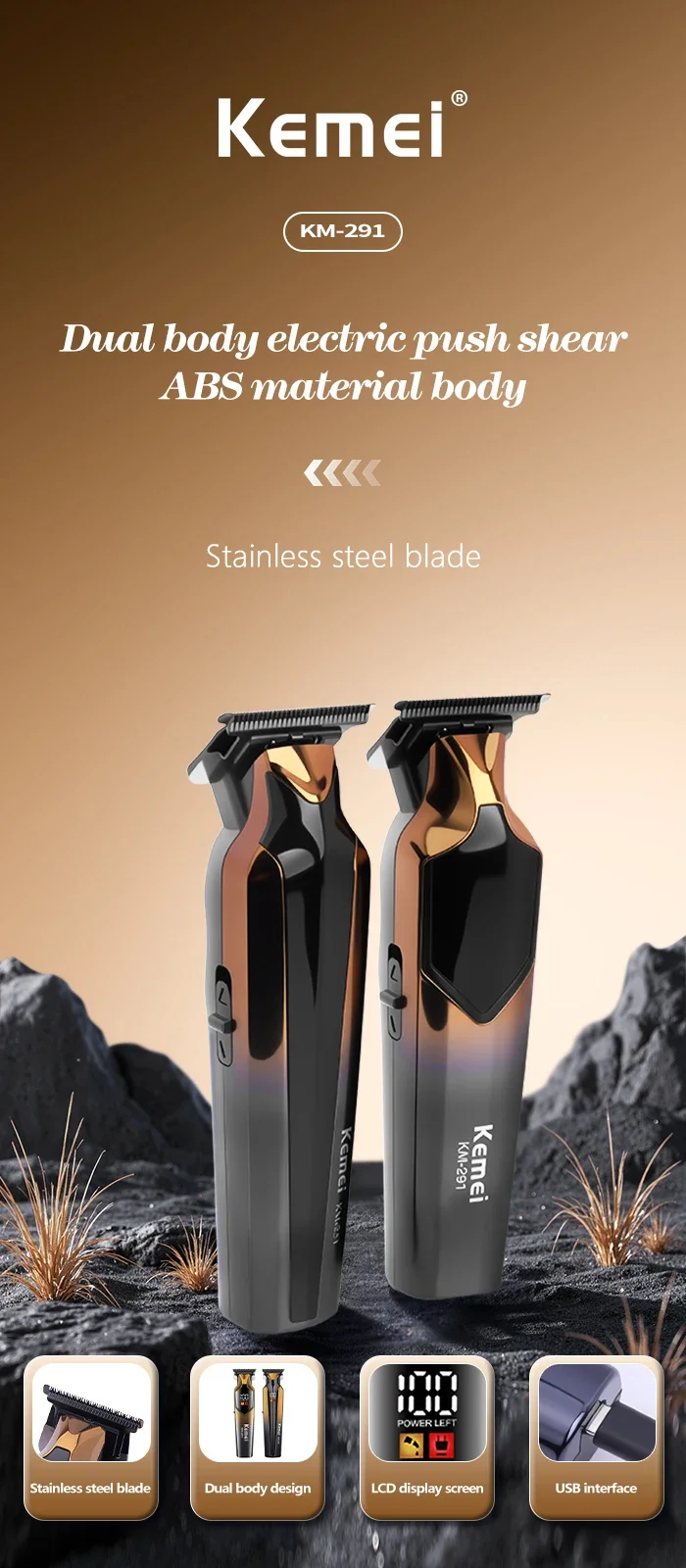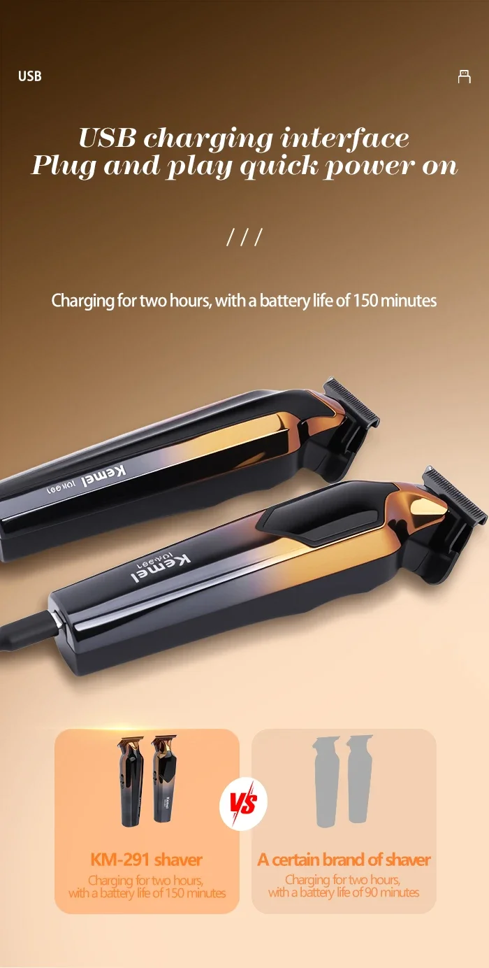 Kemei KM-291Cortadora de pelo con pantalla Digital de Color degradado, maquinilla de afeitar para hombres, tijeras para tallar, cortadora de pelo para el hogar, regalo