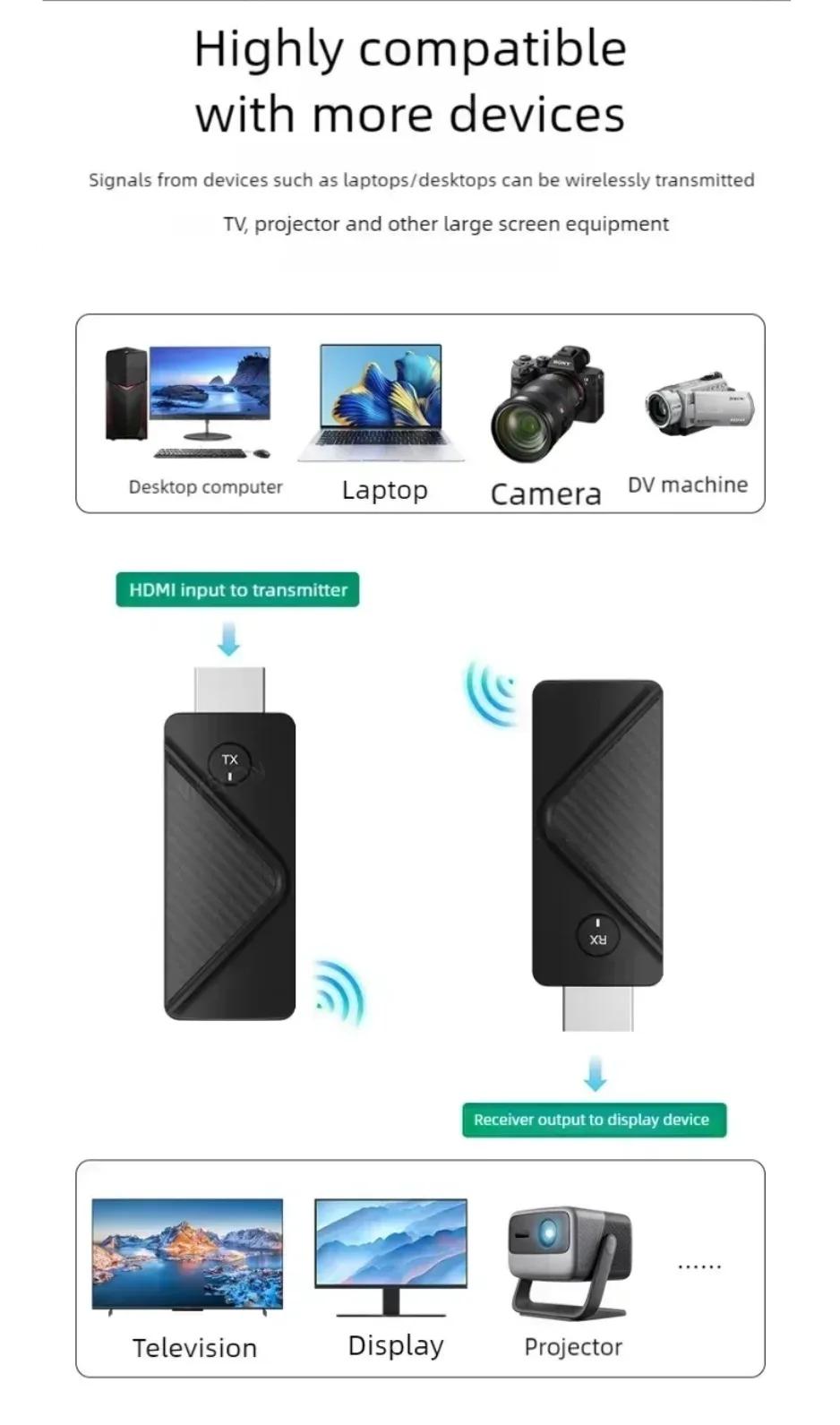 Kits receptor y transmisor de vídeo HDMI inalámbrico de 50M, adaptador extensor Compatible con HDMI, Dongle de TV Stick 1080P para Monitor, PC y portátiles