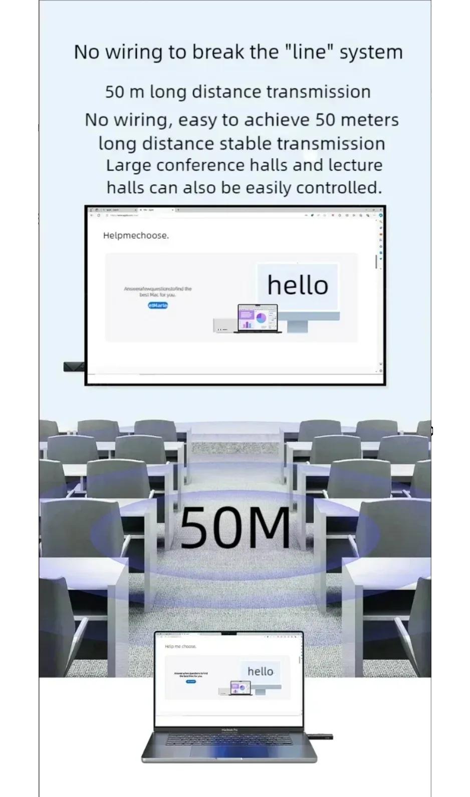 1.Transmita señales de audio y vídeo HDMI a largas distancias a través de WiFi, hasta 50 metros de longitud;