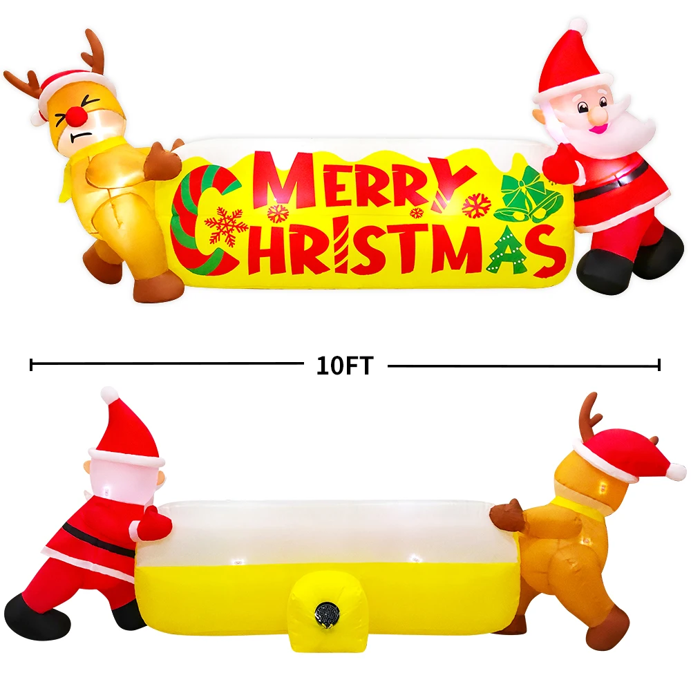 KOOY Decoraciones navideñas inflables para exteriores de 10 pies, pancarta navideña con Papá Noel y reno, inflado navideño para patio inflable