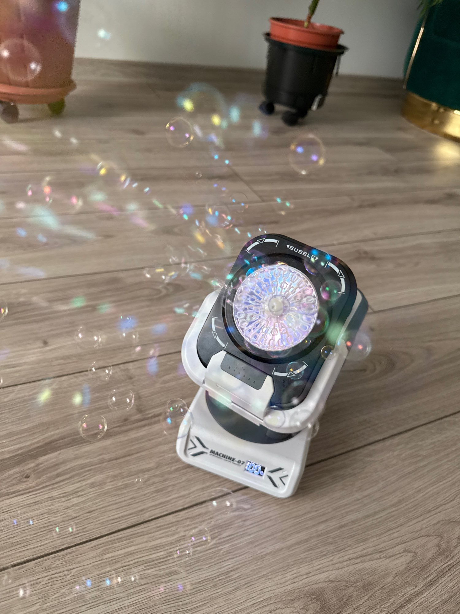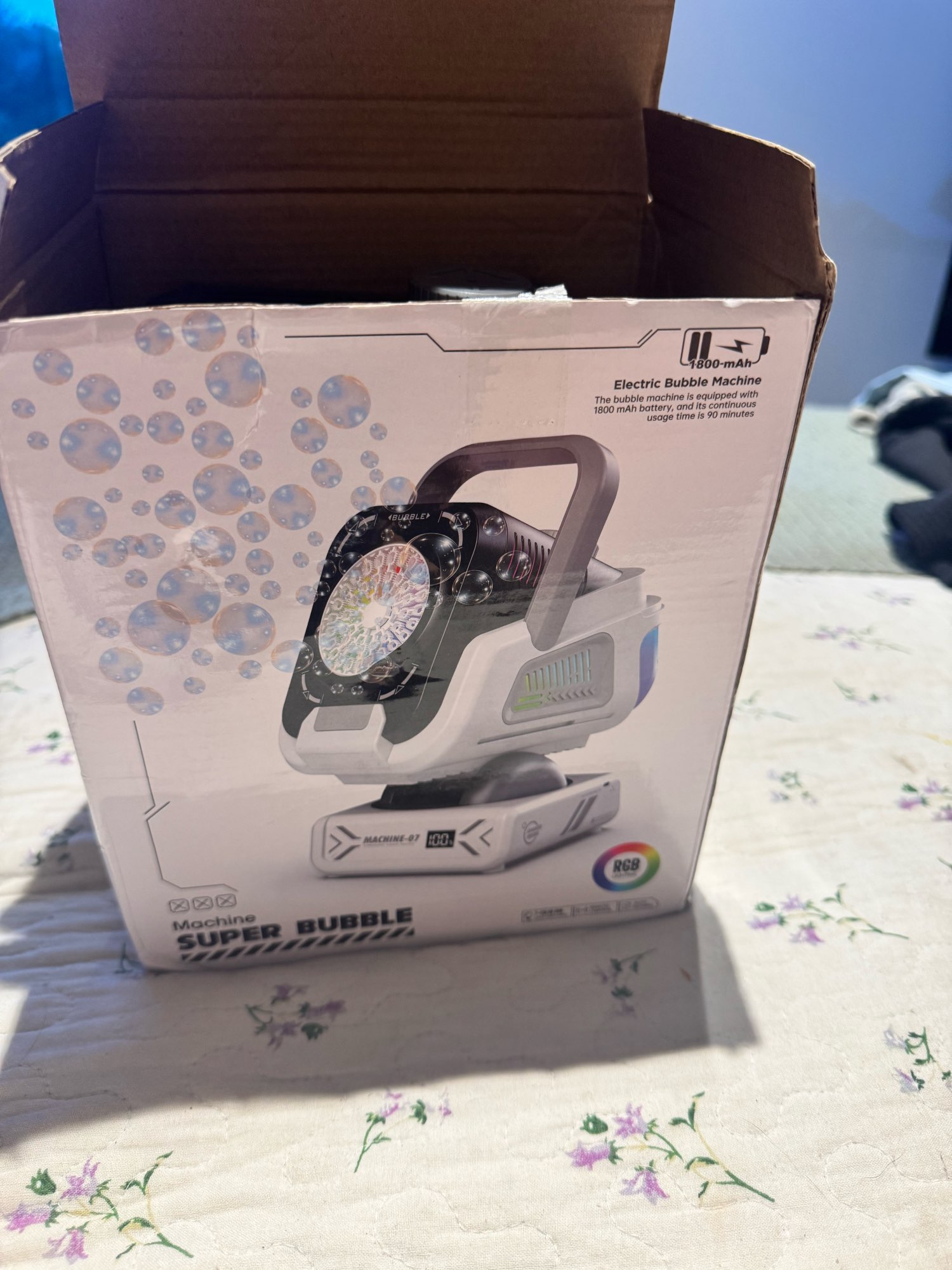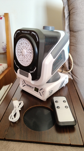 Excelente producto, funciona perfecto, no derrama en ninguna posición, inclinación ajustable, 7 colores de luces. Las burbujas son pequeñas, perfectas para no dejar tan mojadas las superficies. Recomendado al 100%