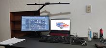 Muy contento con esta lámpara. Los puntales son de aluminio, aunque las juntas son de plástico. Espero que la calidad de la articulación sea lo suficientemente buena como para durar la distancia. La rigidez de la articulación es suficiente para mantenerla en cualquier forma. Buena altura/alcance, y la capacidad de mover los 2 extremos puede ser útil para ayudar a enfocar la luz en el área deseada, y el lapso de las luces significa que tiende a no obtener sombras. Si no lo recogió de su descripción, puede activar/desactivar los winglets de extremo independientemente de la tira central (y viceversa). Selecciones de color están bien, y el brillo es un montón... ¡Desafortunadamente, me muestra cuán desarreglado está mi Esquina de trabajo, lol!