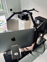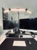 La abrazadera ahorra espacio admite hasta 2,5 pulgadas del escritorio. Ocupa menos de 4 pulgadas cuadradas de espacio en su escritorio.
