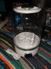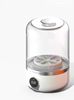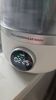 Tamaño pequeño, como un té. Volumen de agua 1 litro. Llegó cargado. En la pantalla encendido/apagado, inicio/apagado, cuenta regresiva de 5 minutos, pausa, tres puntos de carga de batería. Todo está funcionando.