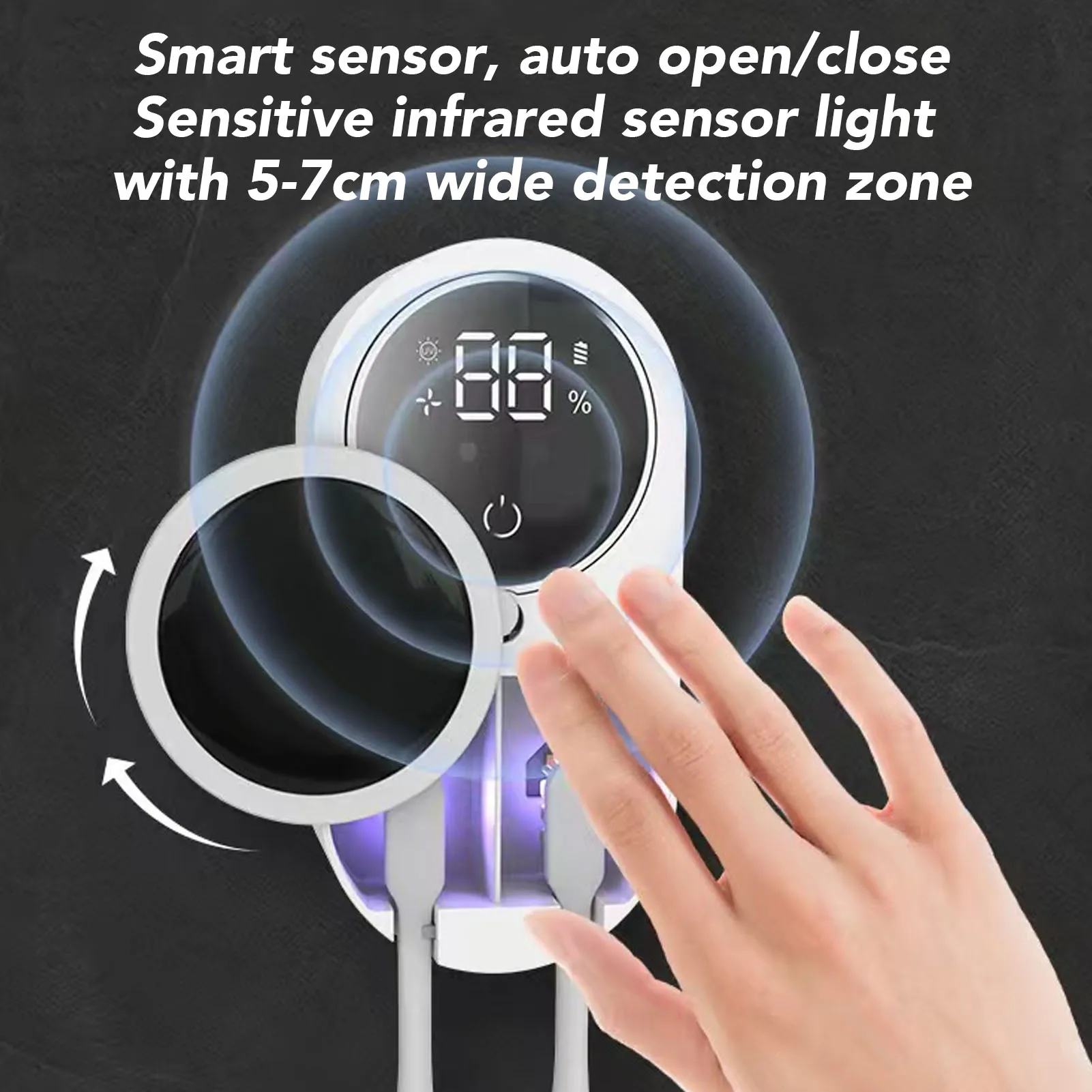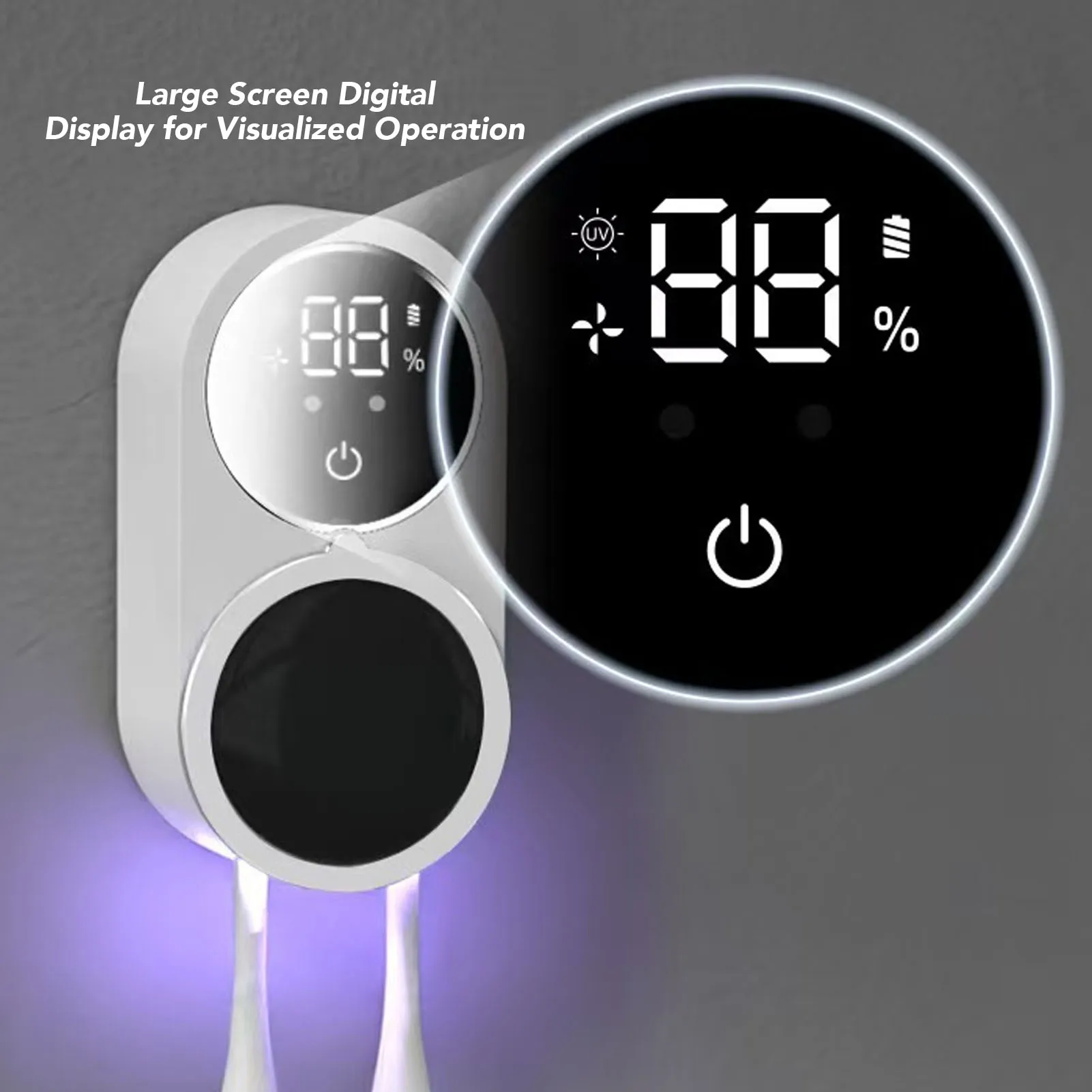 Limpiador y Soporte para Cepillos de Dientes Montado en la Pared, Secador Automático con Sensor Infrarrojo y Pantalla Grande, Blanco
