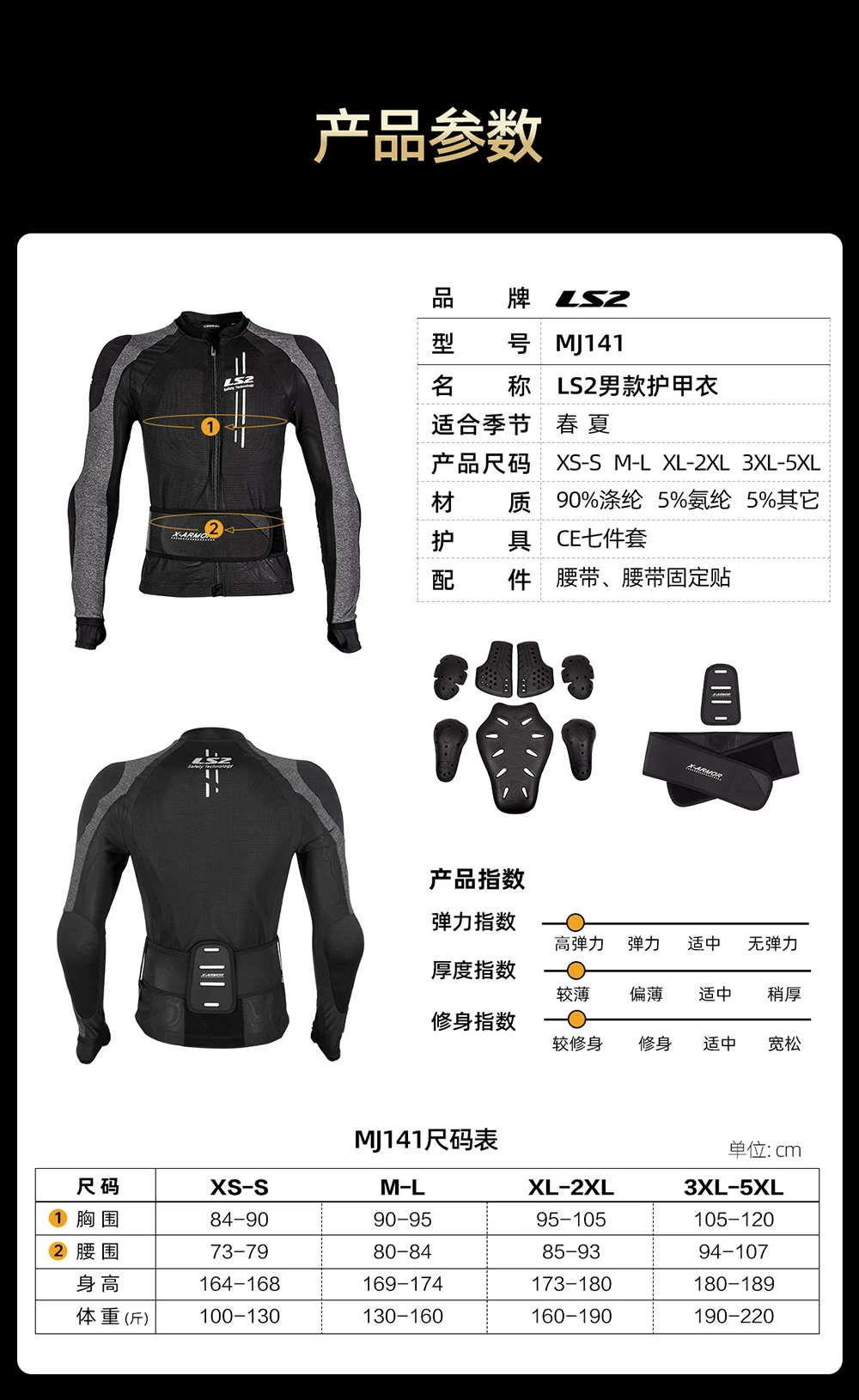 3. Protector CE certificado de seguridad (espalda * 1, hombreras bilaterales * 2, codo * 2)