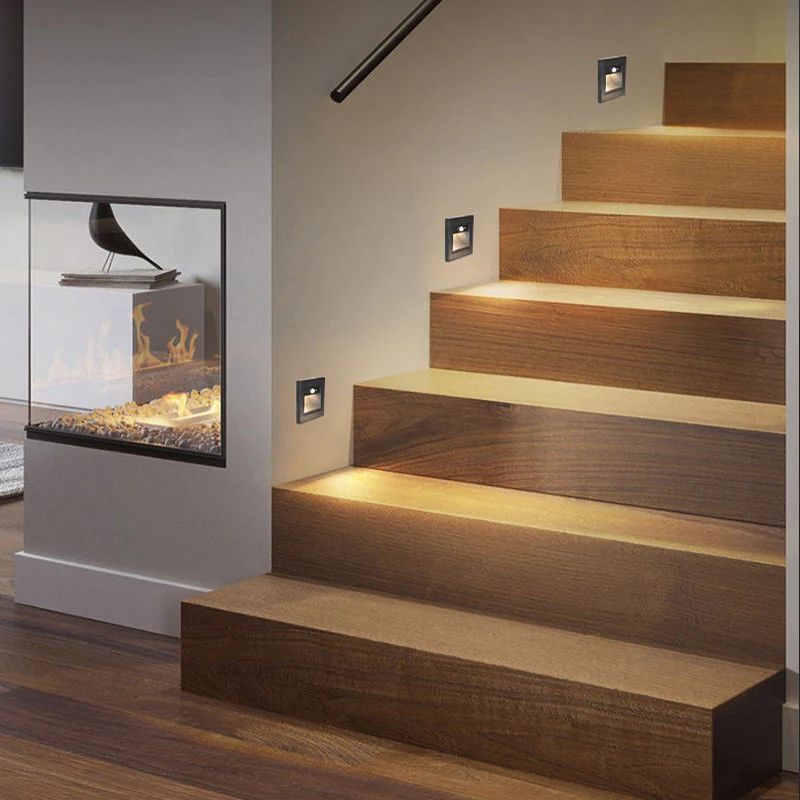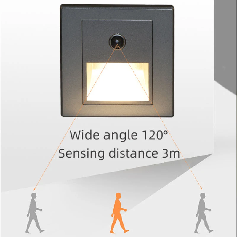 Luces de escalera con Sensor de movimiento infrarrojo, lámpara de pared para escaleras interiores y exteriores, luz LED empotrada de 3W para decoración de escaleras y dormitorios
