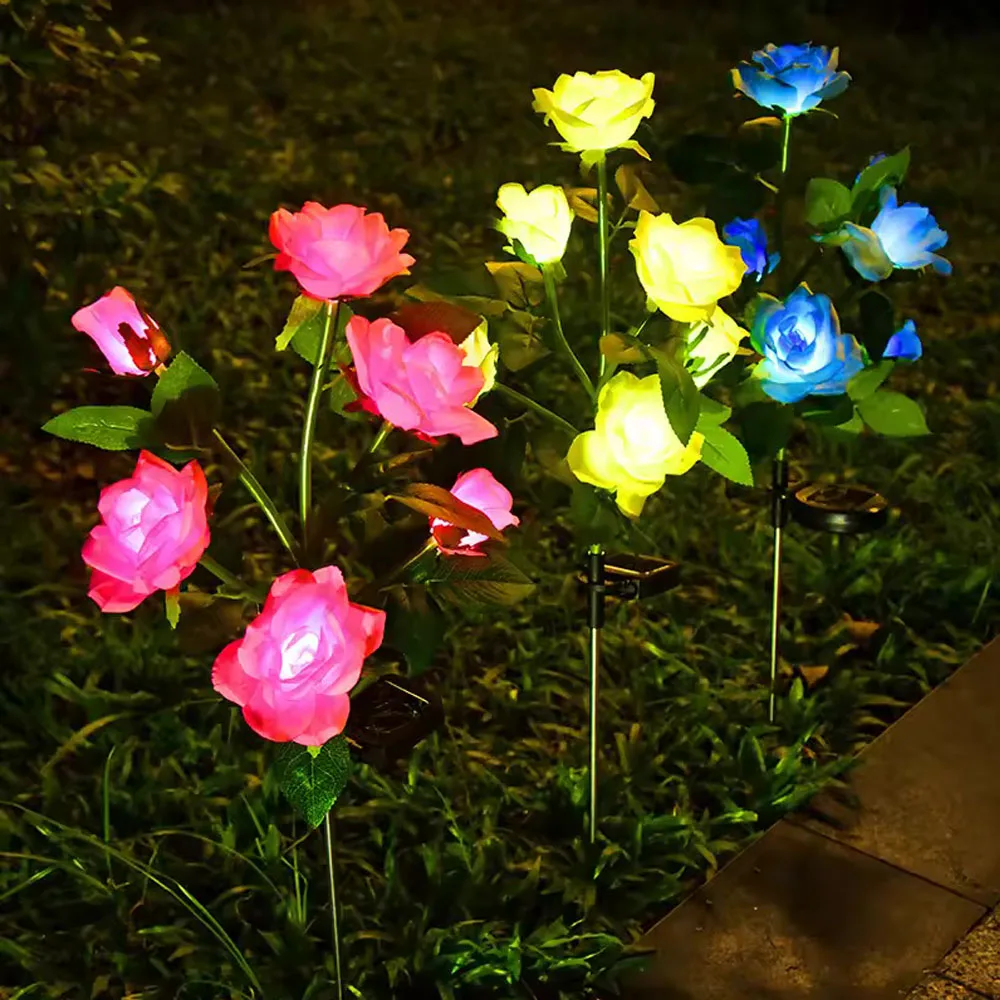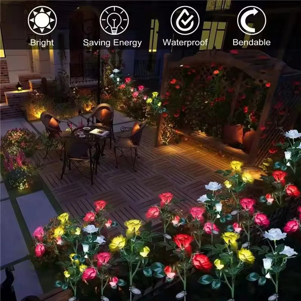 Las luces solares de rosas impermeables IP65 son lo suficientemente duraderas como decoración de exteriores, pueden funcionar y permanecer encendidas en cualquier clima.