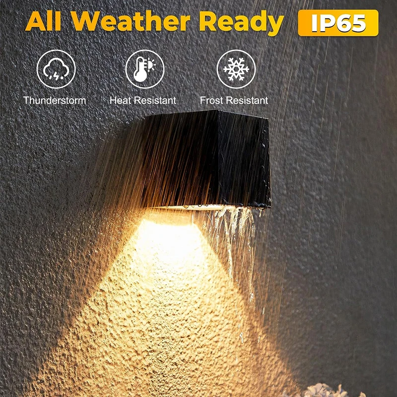 Luces solares de pared mejoradas para exteriores: las luces exteriores para la casa tienen un panel solar más grande y una batería incorporada de 800mAh, sin cableado
