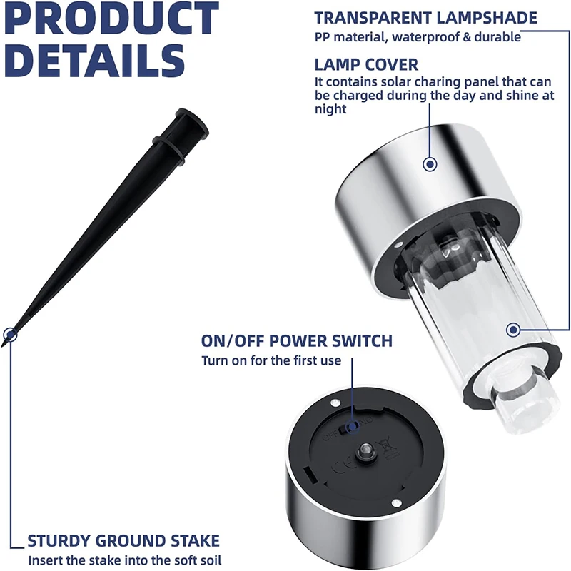 Luces de jardín alimentadas por energía solar: ilumine sus espacios al aire libre con nuestras luces de jardín alimentadas por energía solar. ¡No se necesita cableado! Estas luces innovadoras aprovechan la energía solar durante el día, convirtiéndola en electricidad. Esto no solo los hace prácticamente libres de mantenimiento, sino que también le ayuda a ahorrar en costos de electricidad. Experimente la comodidad y el respeto al medio ambiente de nuestras luces solares.