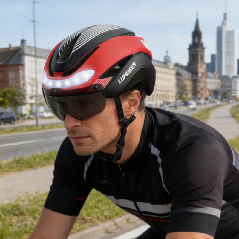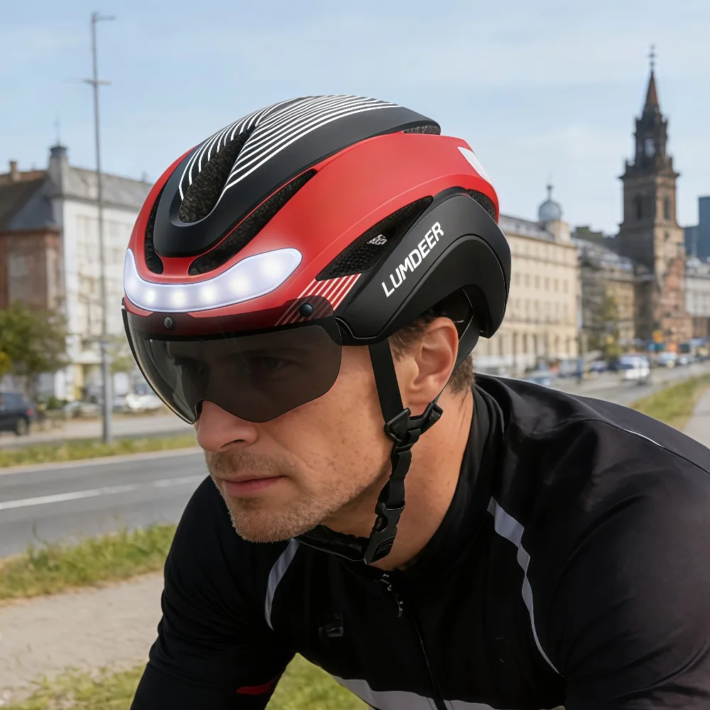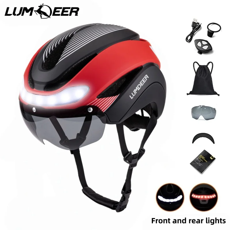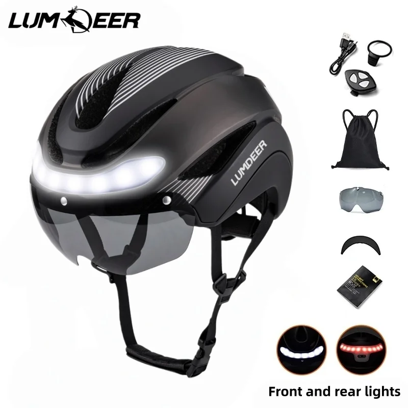 LUMDEER Casco de Bicicleta de Carretera con Señal de Giro, Gafas Magnéticas y Visera Solar – Ultraligero para Ciclismo de Competición, Delantero y Trasero, para Adultos.