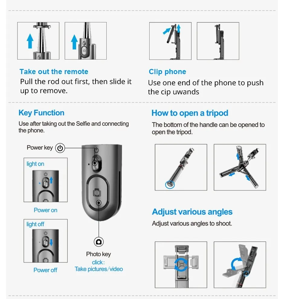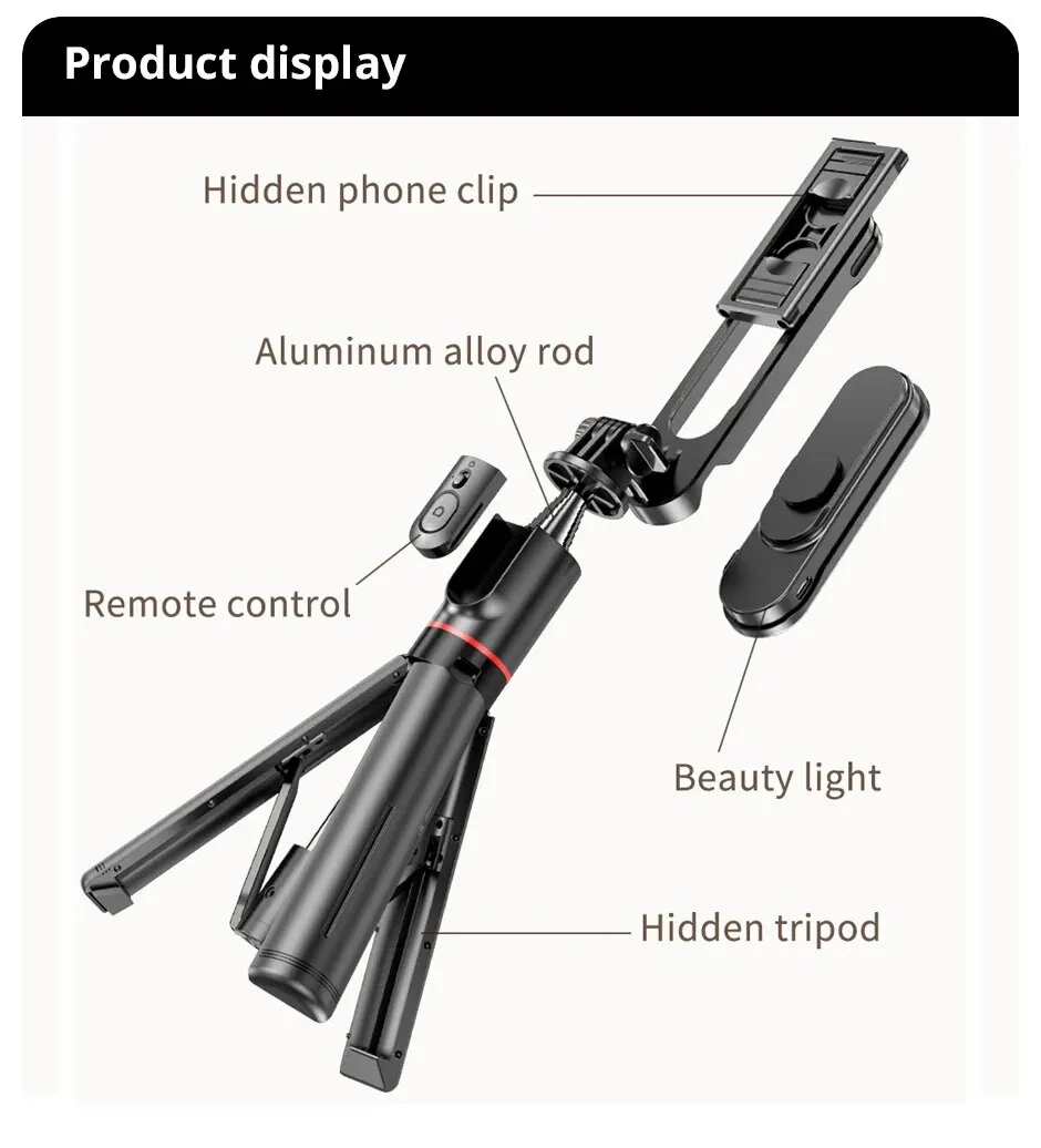• Material de acero inoxidable para mayor durabilidad:El palo selfie está hecho de acero inoxidable, lo que garantiza que pueda soportar el desgaste.