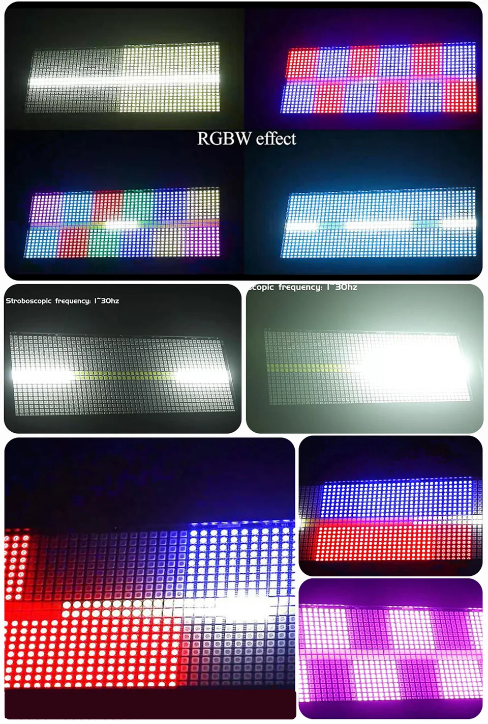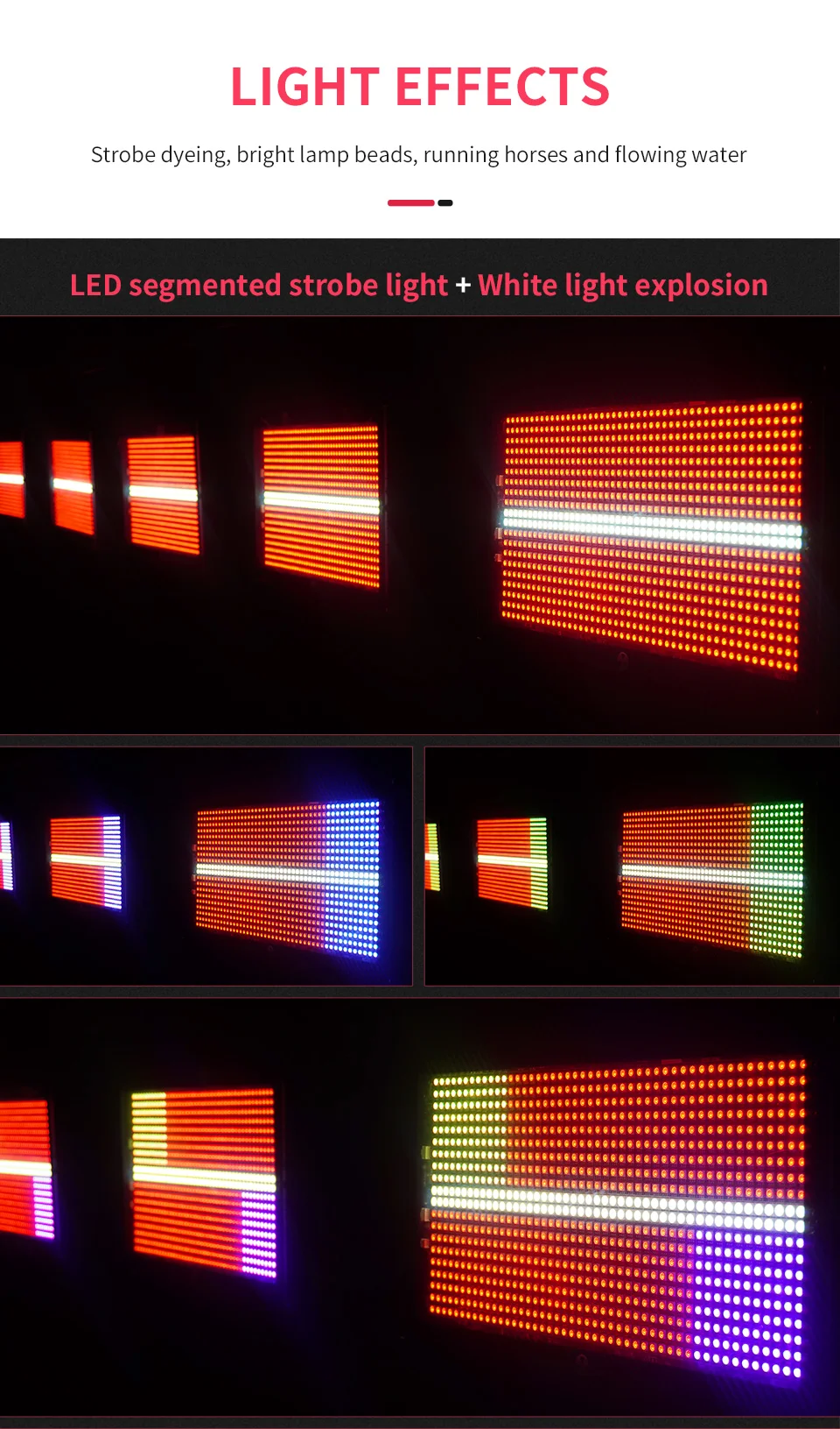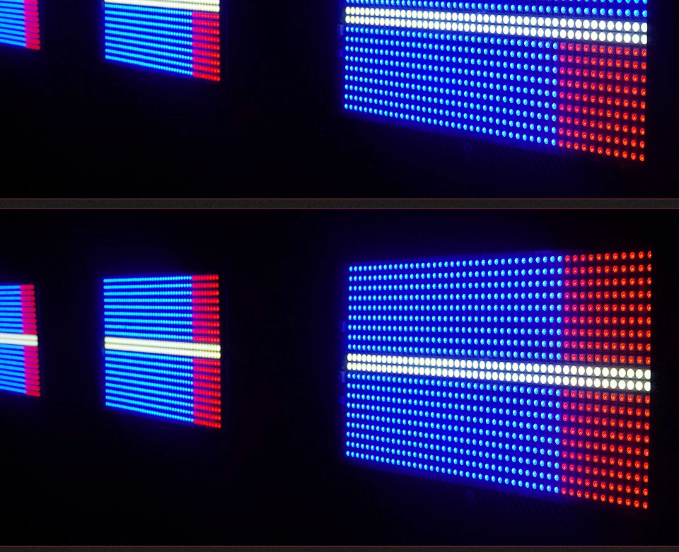 Se muestran los siguientes dos efectos estroboscópicos de apariencia diferente. El efecto de iluminación es el mismo, pero la potencia es diferente. El estroboscópico de la cabeza móvil es de 400W, mientras que el estroboscópico normal es de 280W
