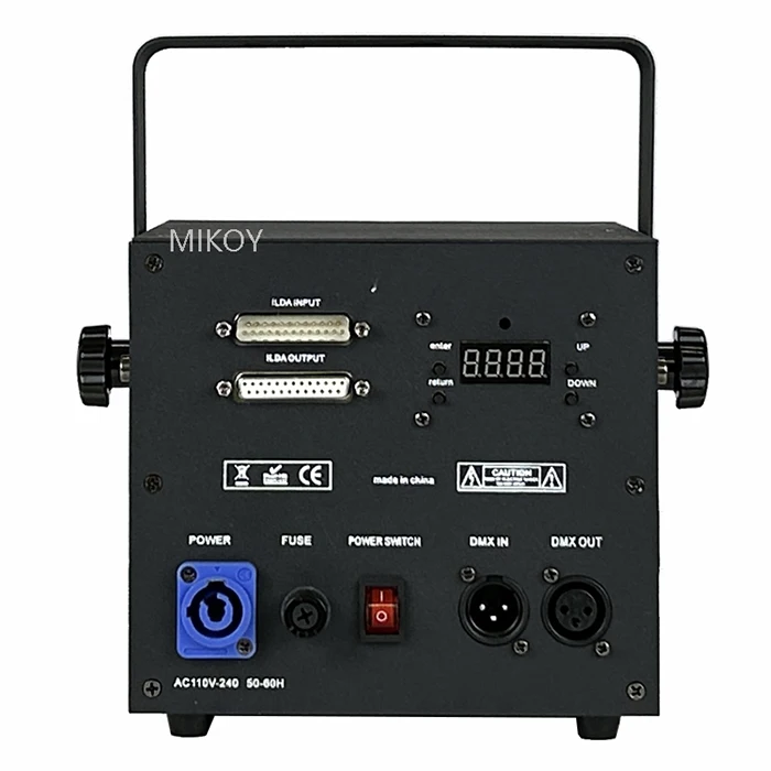Modos de control: control de sonido, ejecución automática, DMX 14/19 canales, modo maestro/esclavo, control de software ILDA