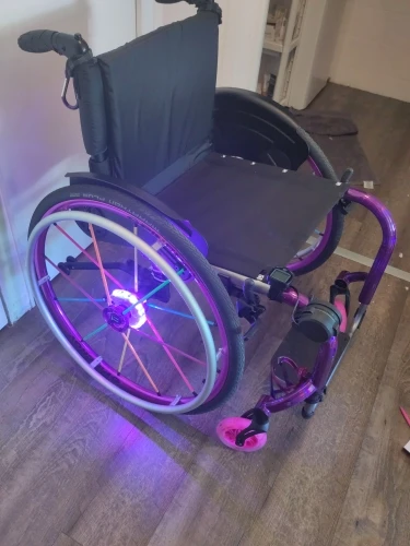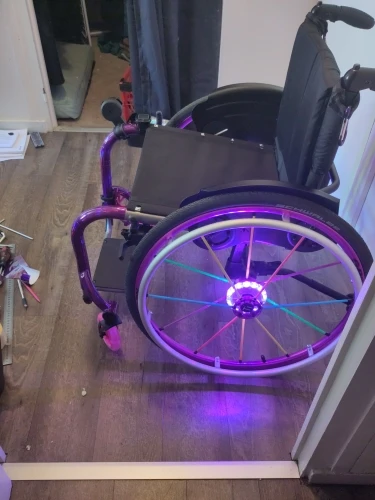 Compré esto para mi silla de ruedas, ¡estoy sumamente satisfecho! Fácil de usar, se ilumina cuando la rueda se mueve, ¡así que no hay necesidad de tocar el interruptor! Perfecto ✨ 👍
