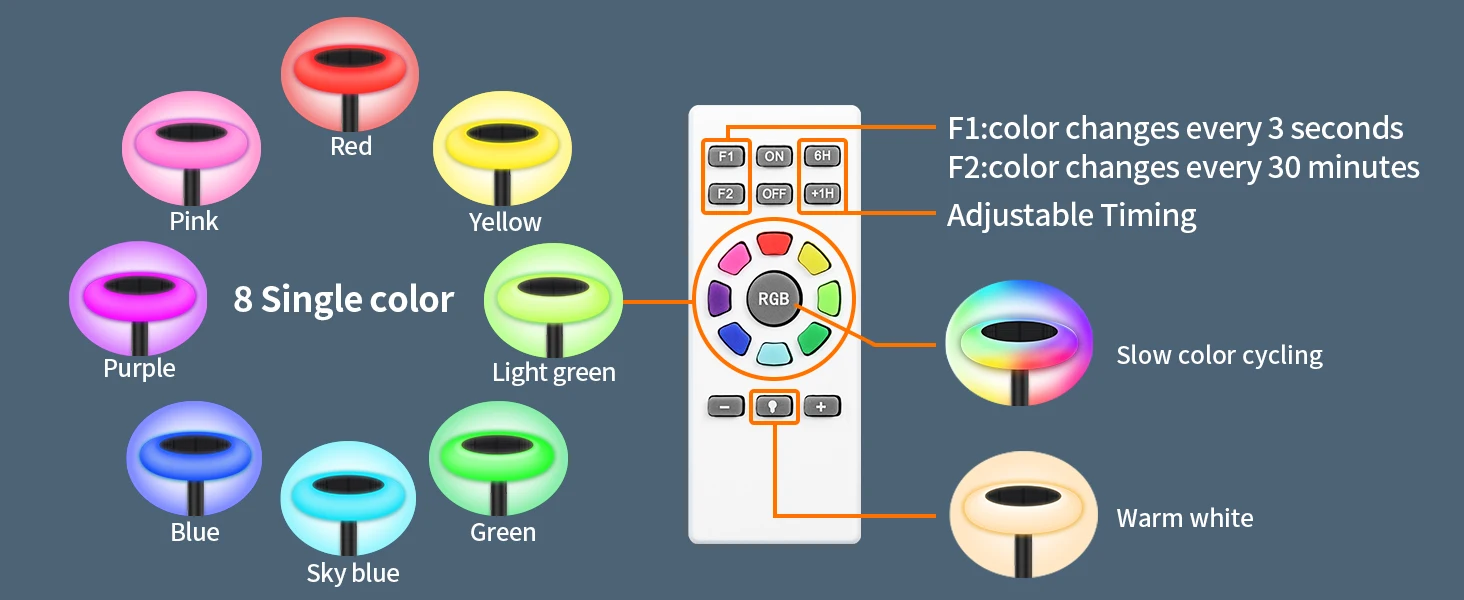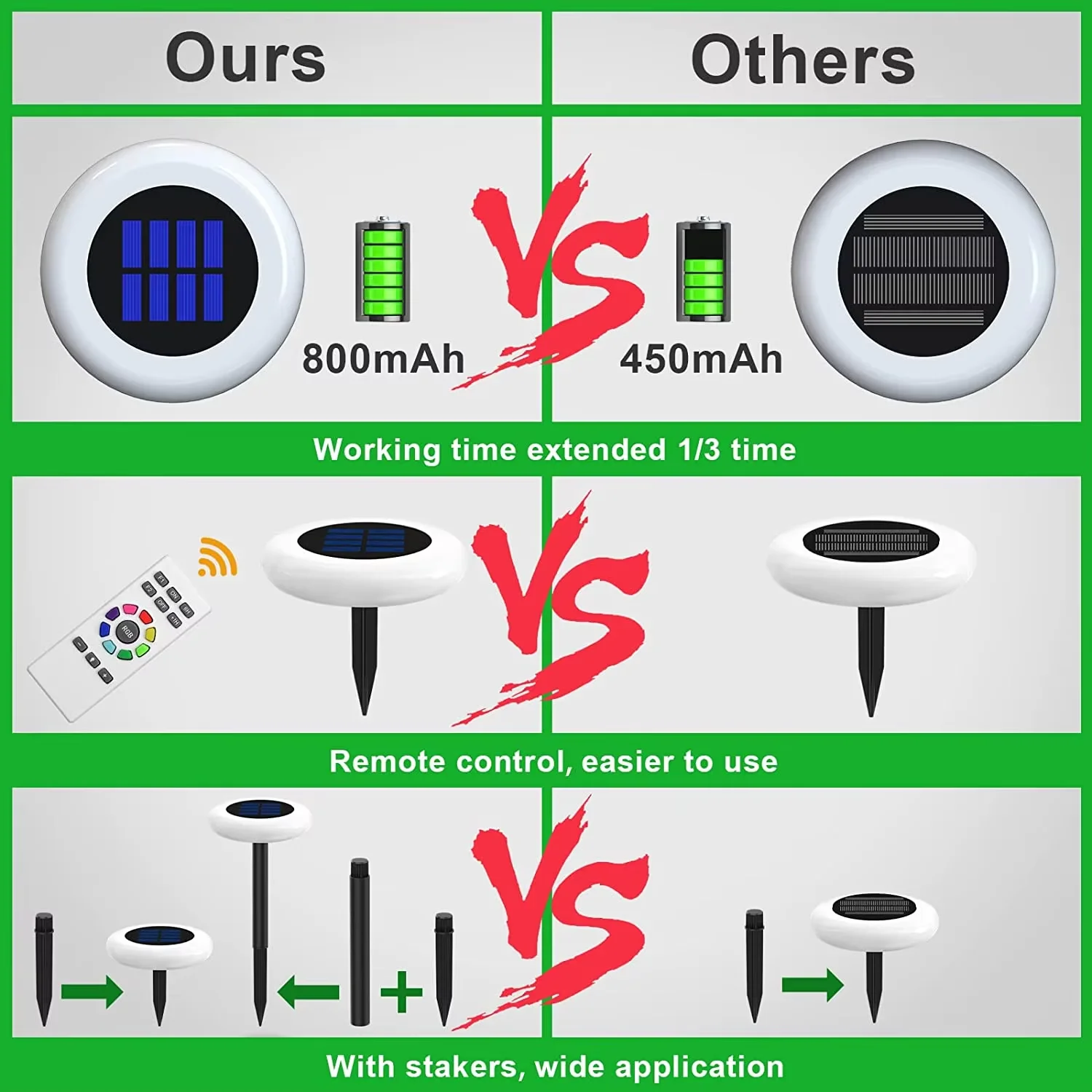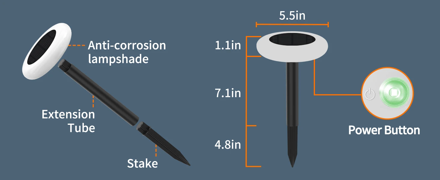 1. 【Panel solar】 Adopta un panel solar más grande que las luces de césped normales, alta tasa de conversión y carga más rápida.La vida útil puede ser de más de 10 años.