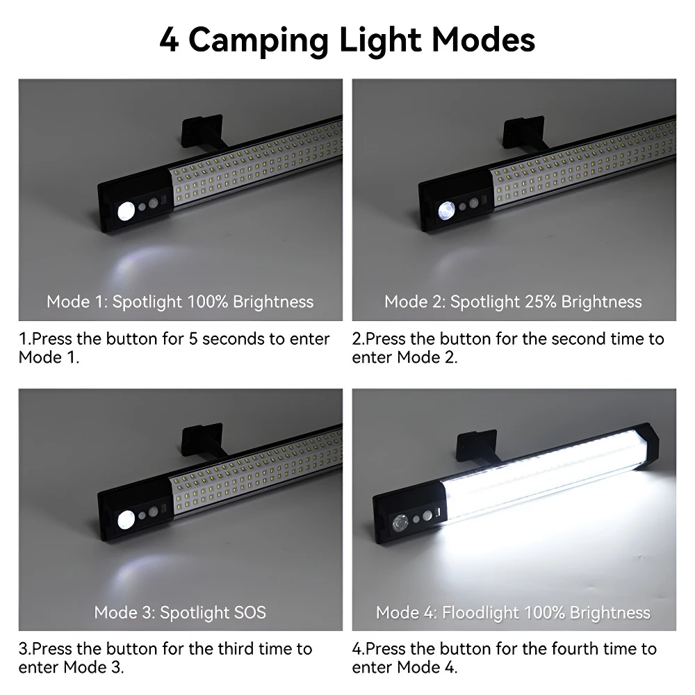 Control remoto inalámbrico: puede ajustar el modo de iluminación (constante/parpadeante/ahorro de energía), brillo (ajuste infinito del 10% al 100%) y cambiar sin levantarse, lo que hace que la operación sea más libre de preocupaciones.Múltiples modos de iluminación: admite brillo constante, parpadeo (señal de socorro SOS) y modo de ahorro de energía para satisfacer las necesidades de diferentes escenarios.