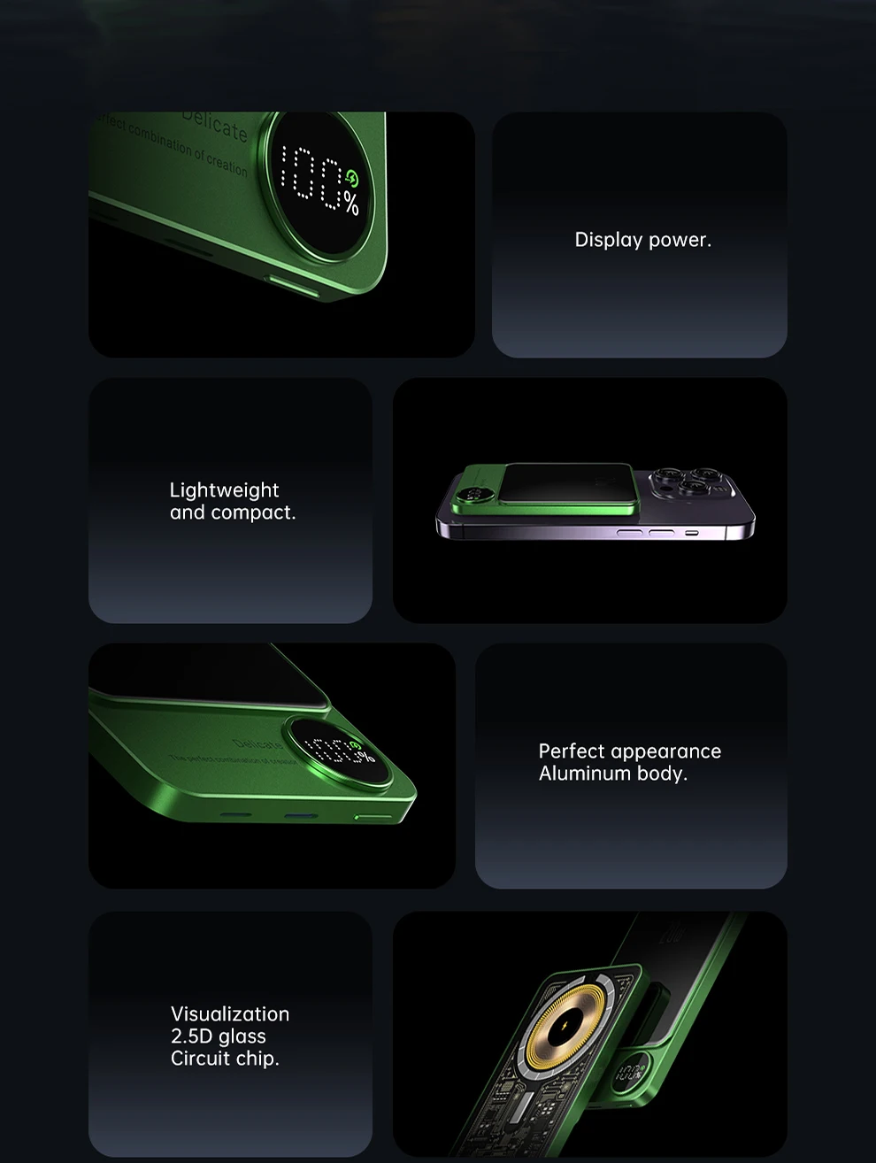 3. Admite carga rápida bidireccional + pantalla digital LED + cuerpo de aleación de aluminio + cuerpo transparente
