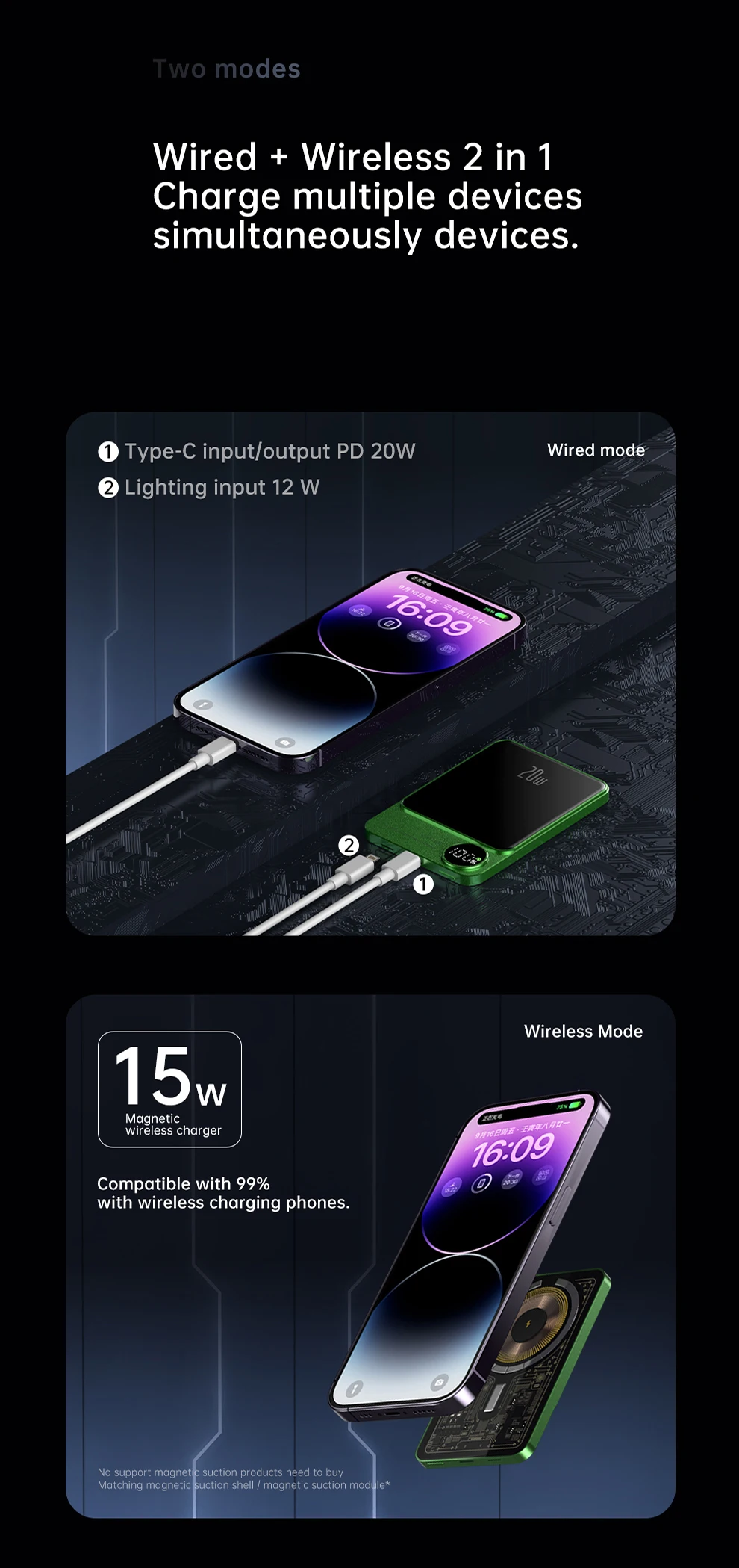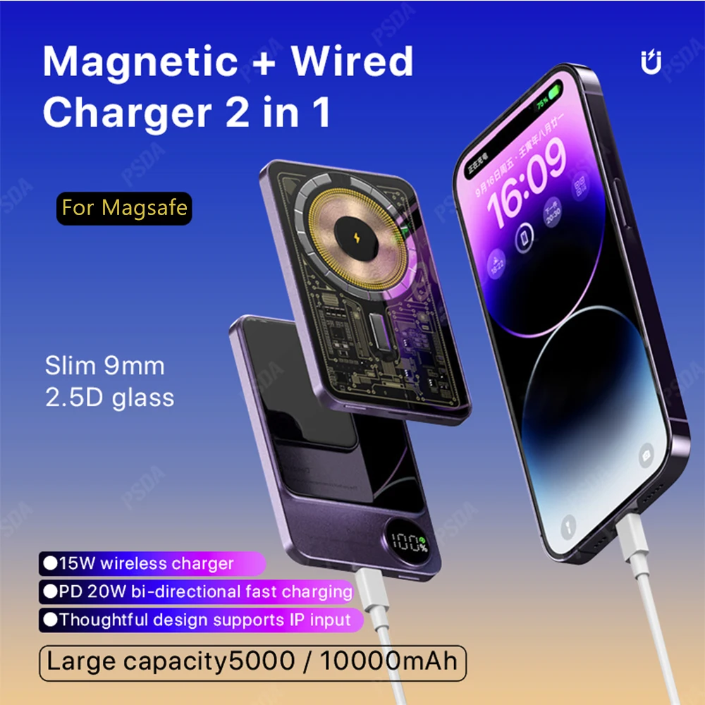 2. 3 en 1 Nuevo, 10000mAh + 15W de carga inalámbrica + absorción magnética + PD20W de carga por cable