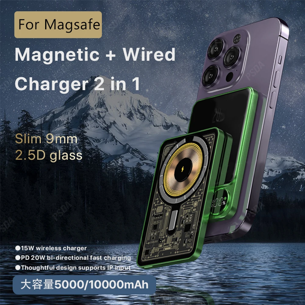 Macsafe-Banco de energía transparente, cargador inalámbrico magnético de 15W para iPhone 12, 13, 14, 15 Pro, auxiliar externo, novedad