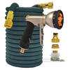Especificación: Tipo: Juego de mangueras de jardín. Tamaño: 25 pies = (7,5 m después de la inyección de agua), longitud original: 2,5 m Color: negro, gris, azul, verde, naranja, rojo, verde oscuro. Material: fibra de poliéster, junta de cobre.