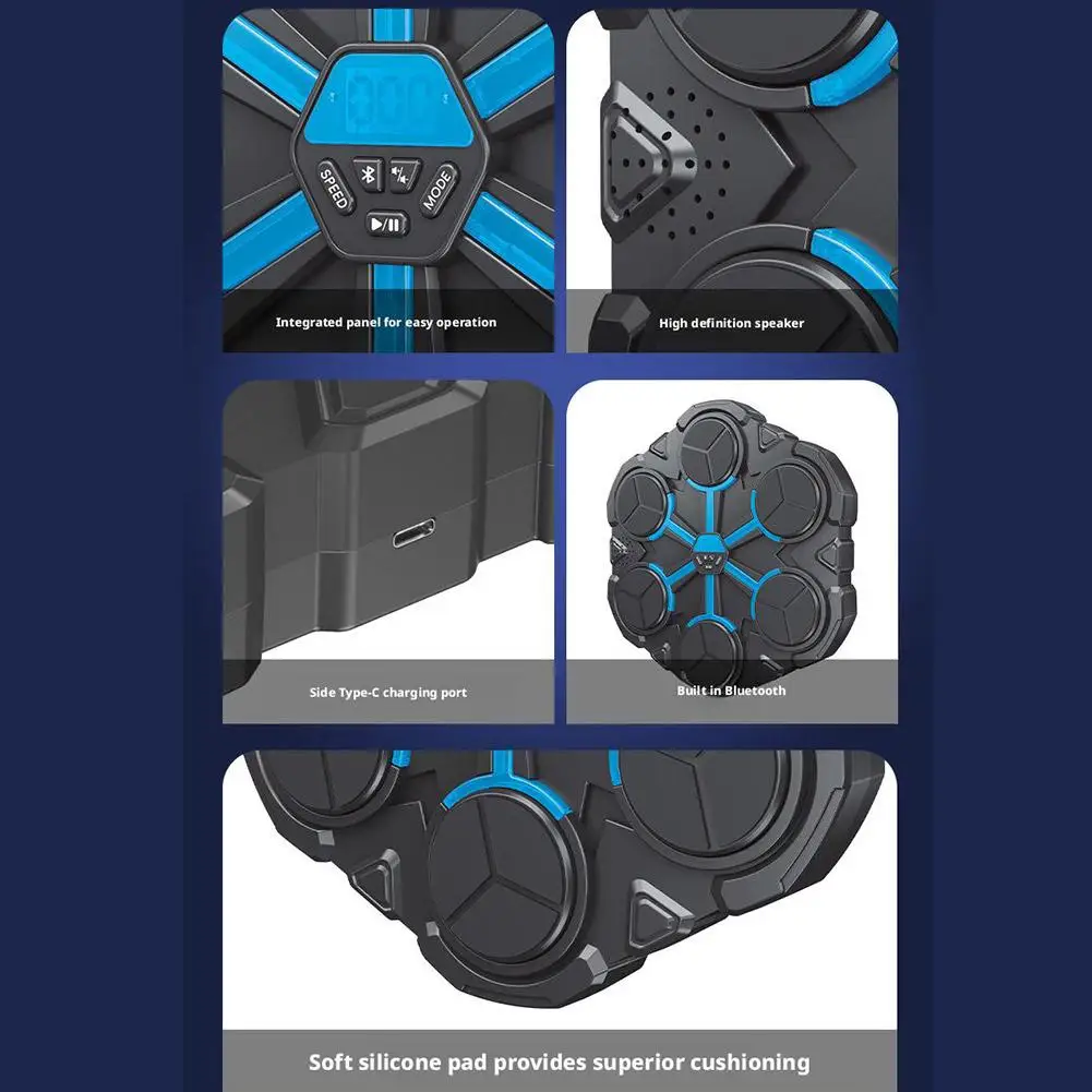 1.El ritmo guía la dirección del ataque: este objetivo de boxeo musical combina el ritmo musical con el entrenamiento de boxeo.La luz indicadora dinámica parpadea con el ritmo de la música para ayudar a los usuarios a captar con precisión la dirección del ataque, mejorar el tiempo y la precisión del golpe, entrenar su velocidad de reacción y aumentar la diversión.