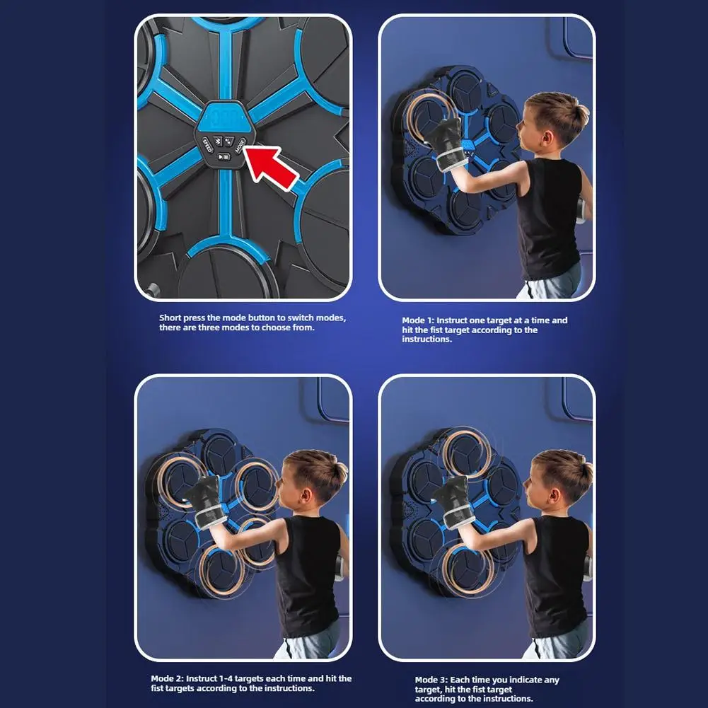 Máquina de boxeo inteligente de seis objetivos para entrenamiento de boxeo para niños, máquina de objetivo, música, pared, boxeo, hogar, montado en la pared D9m9