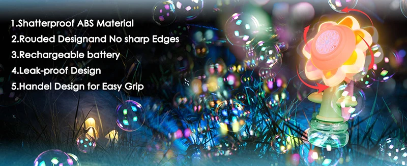 Máquina de burbujas de girasol para niños, juguete automático de burbujas de flores con iluminación colorida para niños pequeños, soplador de burbujas para niños de 4 a 8, máquina de burbujas portátil de 20000 +, juguete para exteriores