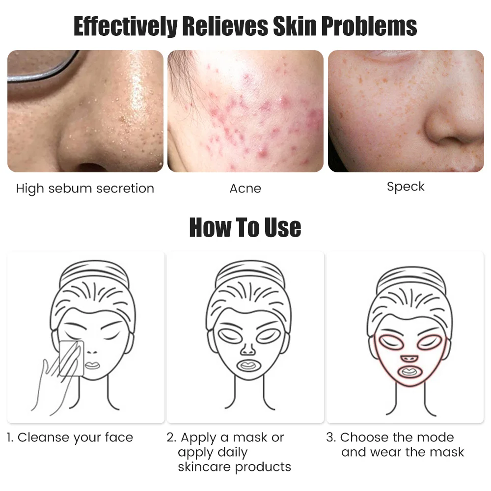 2.Blue light(470nm):Calms skin, balances secretion,and controls oil