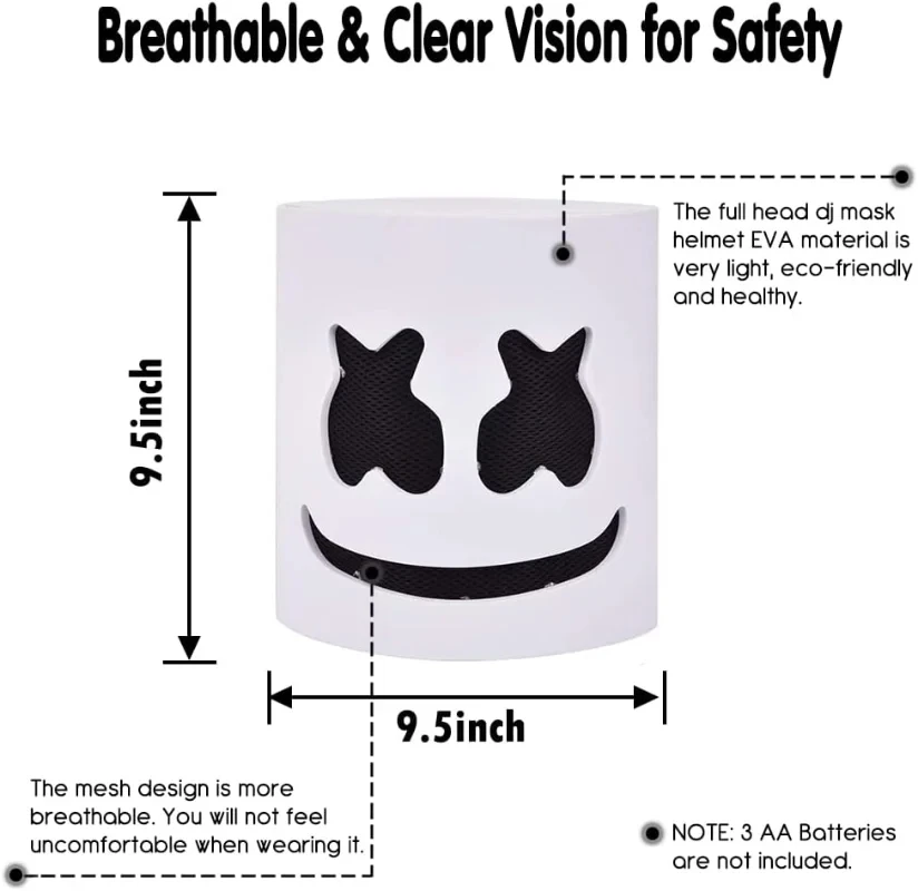 Máscara de cabeza luminosa para DJ, máscara de Marshmello realista, máscara de casco transpirable, Festival de Carnaval duradero, accesorios para fiesta de Halloween, Cosplay