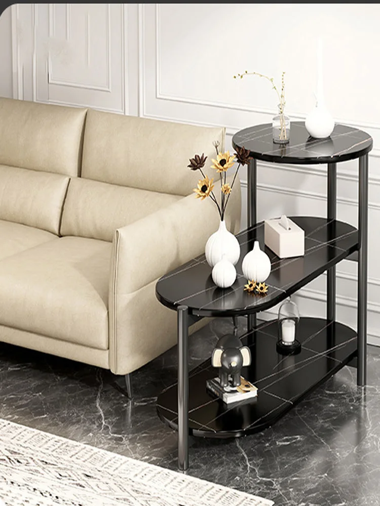 MESA DE CENTRO MULTIUSOS DE 3 NIVELES CON DISEÑO MINIMALISTA TIPO MARMOL.