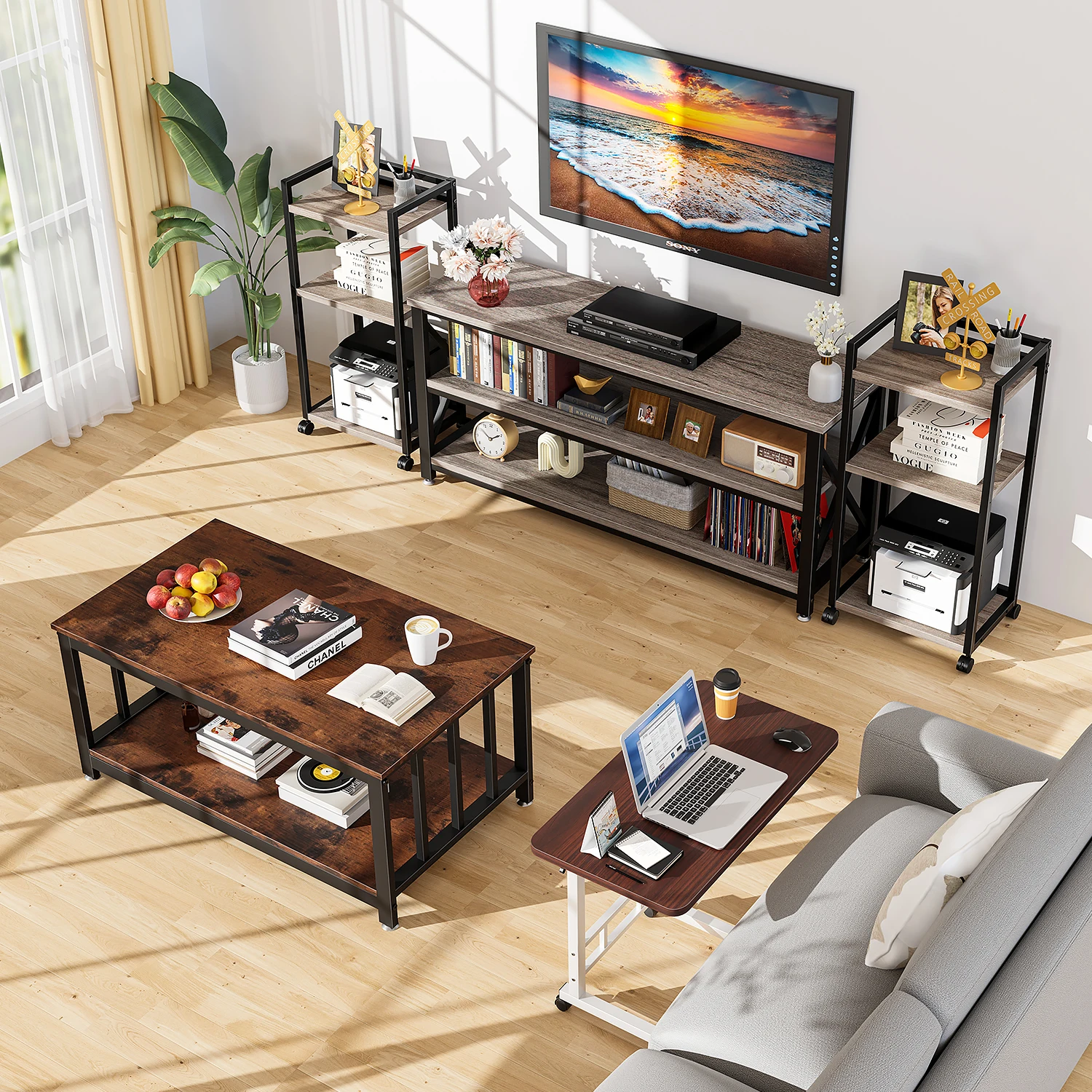 Ahorro de espacio y conveniente : puede almacenar y ver fácilmente lo que hay sobre la mesa, puede desbloquear fácilmente las ruedas, moverlas cuando lo desee y bloquearlas cuando las use para que no se escapen.