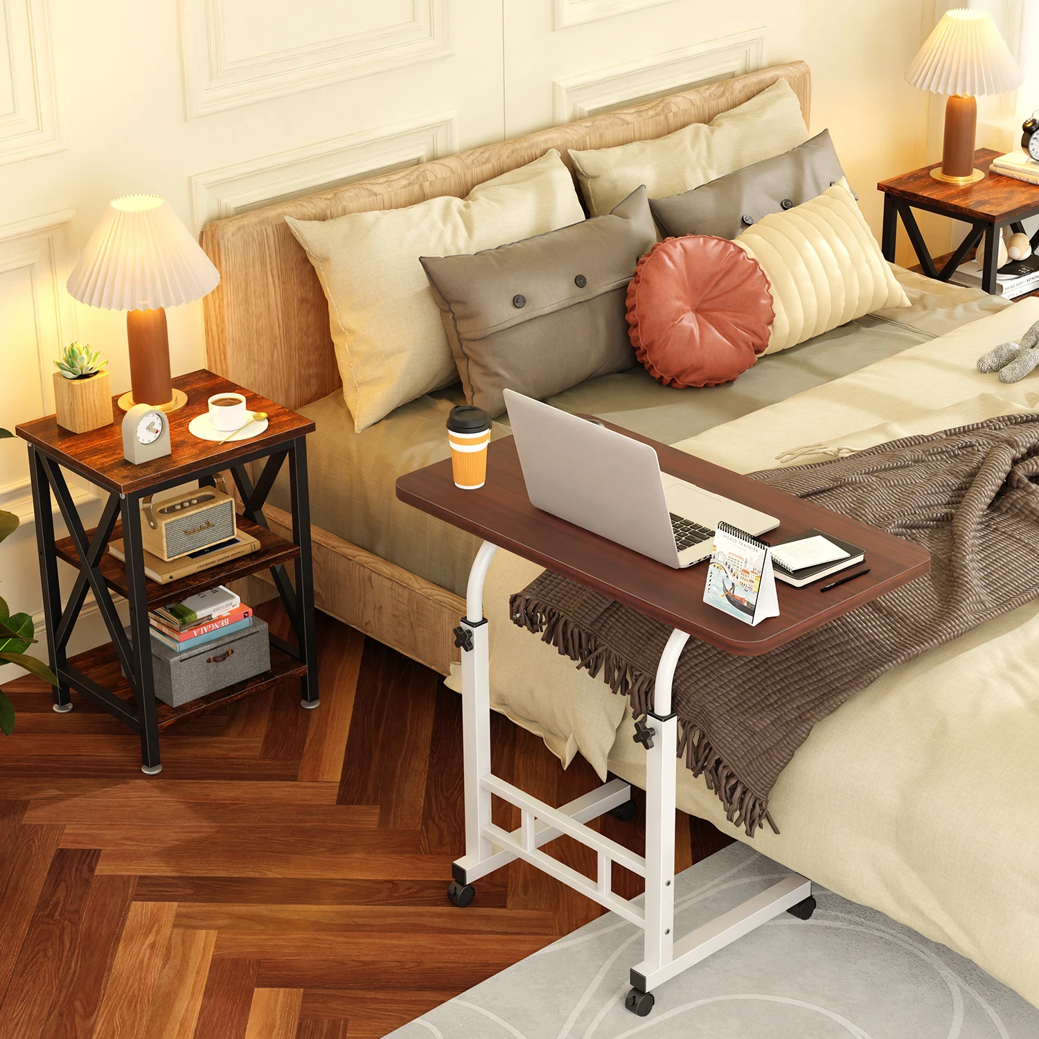 Mesita de noche multifuncional y Escritorio ampliado : Escritorio mejorado y ampliado, escritorio de 60*40 cm, puede satisfacer las necesidades de más actividades, colocar más objetos, acomodar fácilmente portátiles, lámparas, libros, café, teléfonos móviles, etc., el grosor del escritorio es de 12 mm, y la capacidad de carga es alta.siempre puede usar esta mesa de diseño en forma de C para deslizar la mesa debajo de un sofá, una cama, etc.para que sea fácilmente accesible. Se puede utilizar como mesa de ordenador, mesa de juegos, mesa de estudio, mesa de centro y mesa de desayuno, será el mueble ideal para tu hogar o lugar de trabajo.
